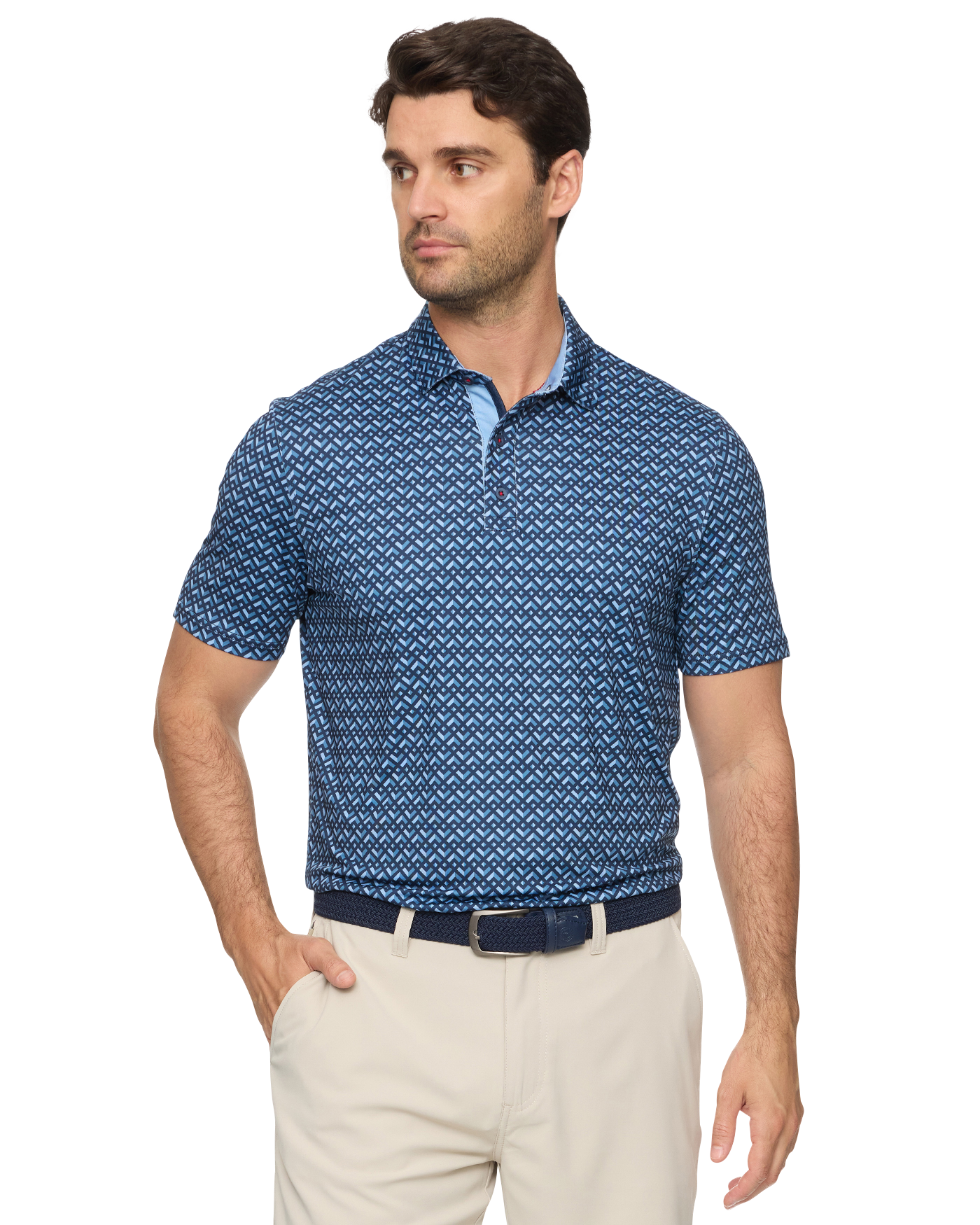 Made from a stretch jersey fabric that feels as smooth as your swing with details as sharp as your short game, we've teed up the most versatile performance polo in a variety of unique prints guaranteed to get the good times rolling whether you're on the go or in the game. Traditional three-button front placket; rubberized MadeFlex performance patch logo at center back neck. Tailored athletic fit.