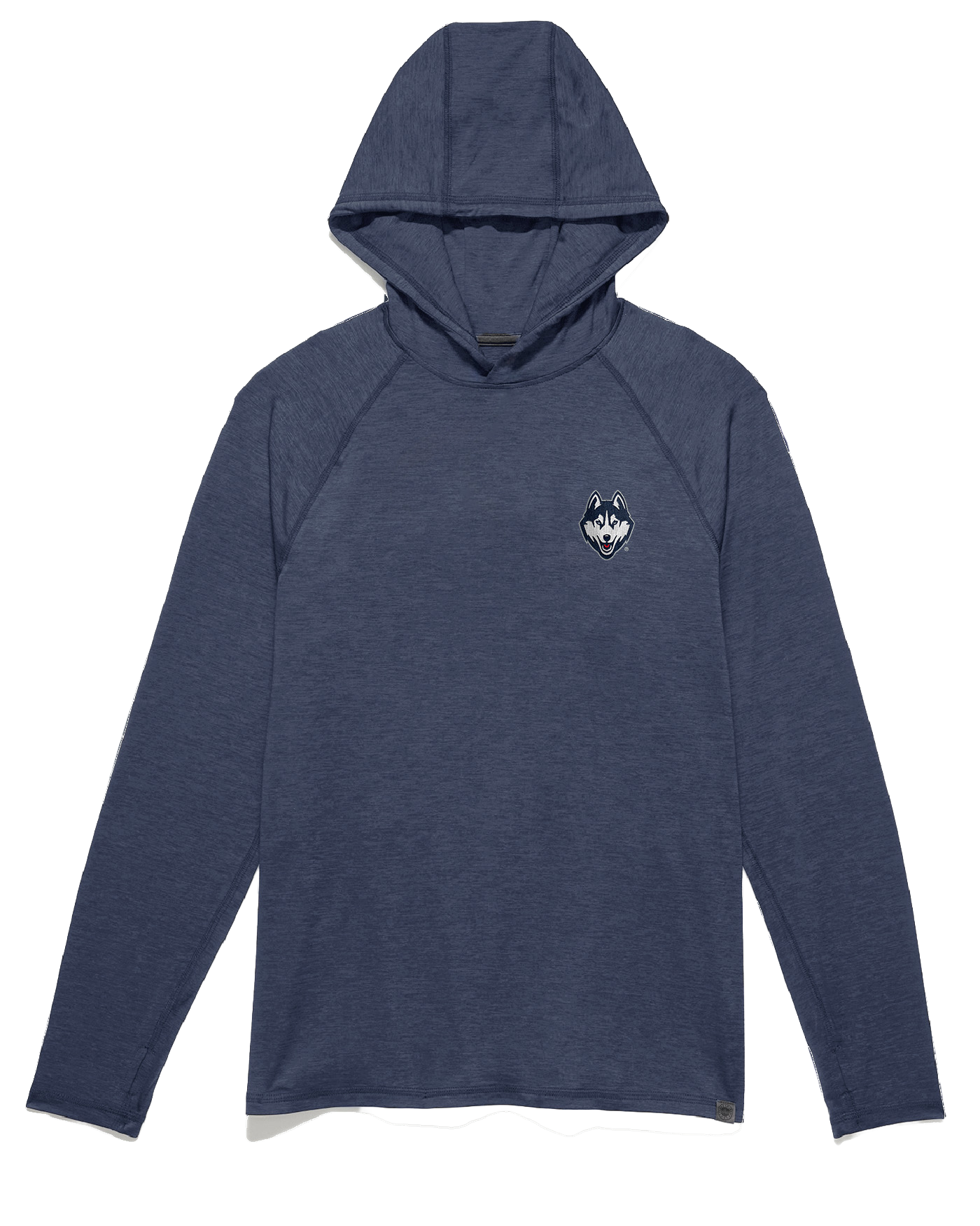 We took everything you love about the classic hoodie style and enhanced it with moisture wicking, premium stretch performance fabric. It even has UPF sun protection to shield you from harmful UV rays to create the perfect laid-back look for the guy on the go. Long sleeves with thumbholes for a secure fit. UConn Husky Dog embroidered on chest.