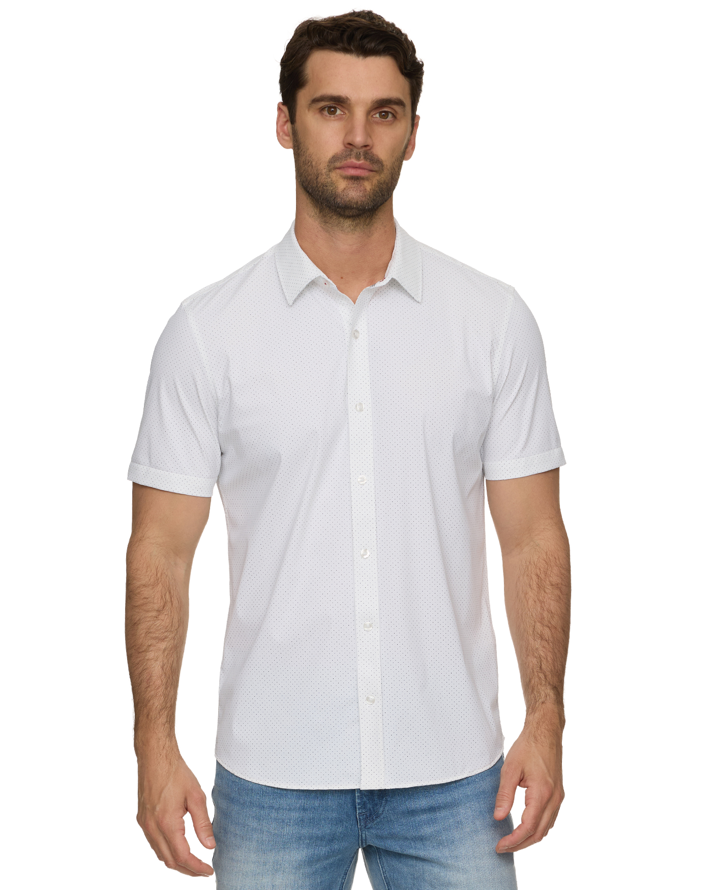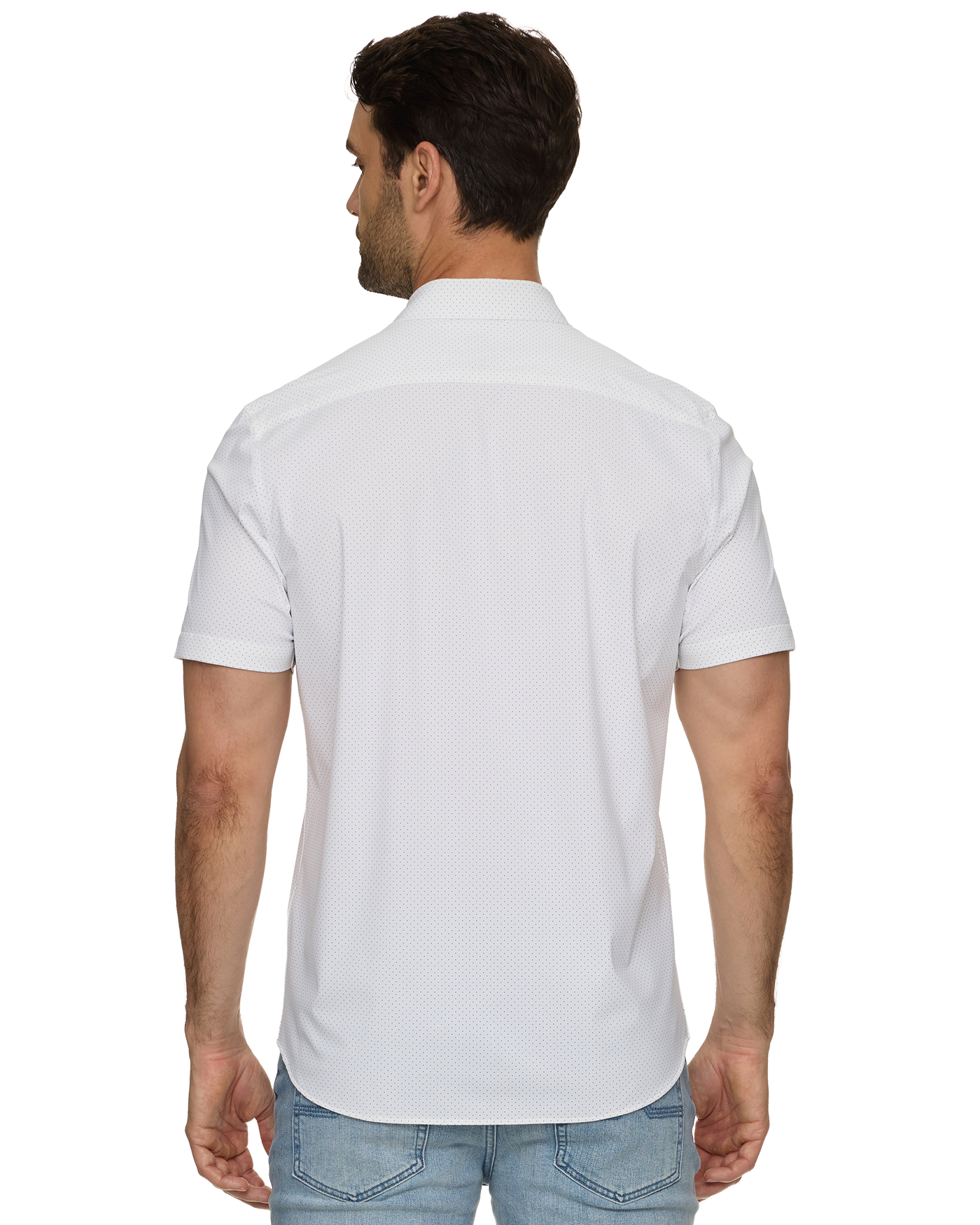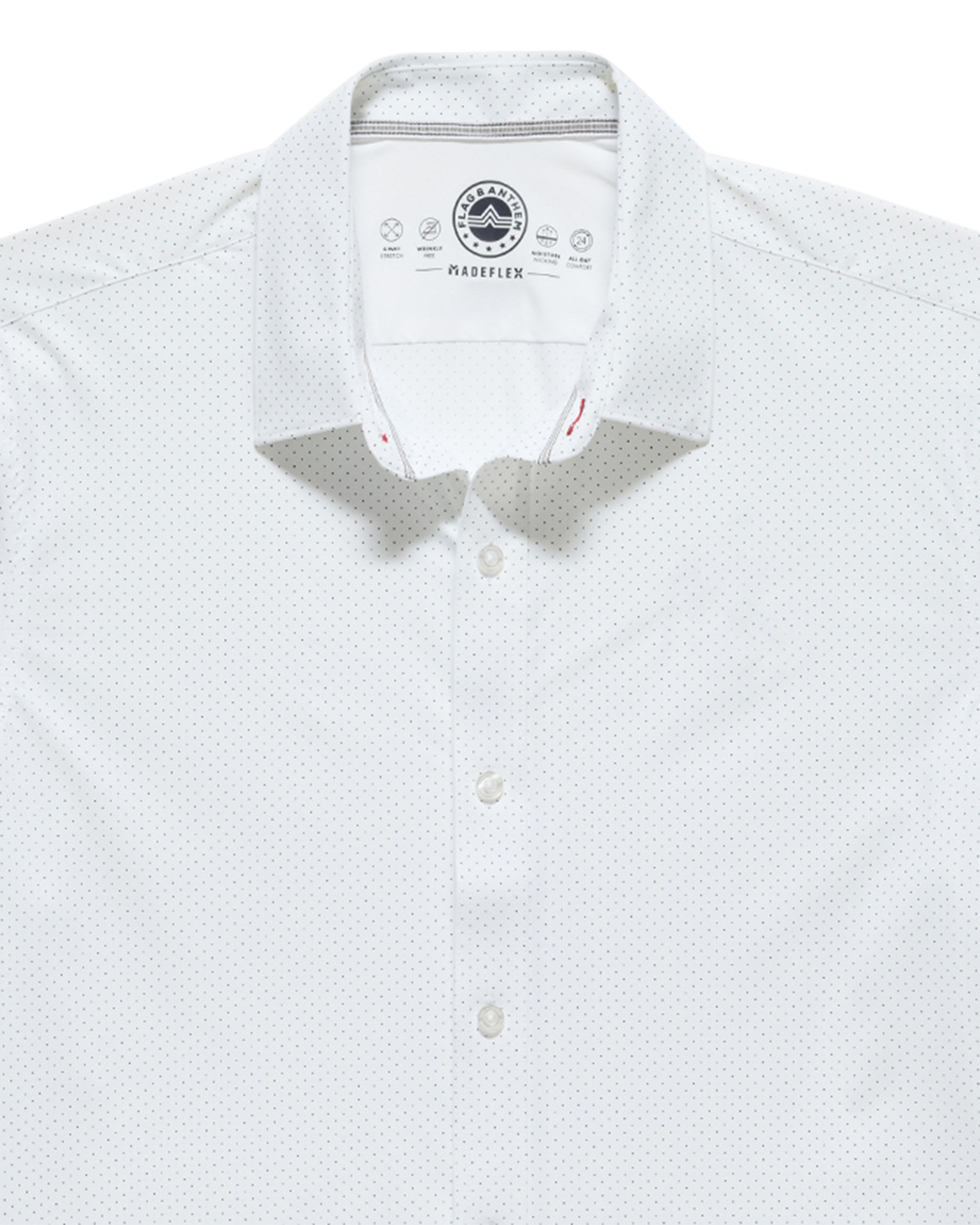 Lightweight, sweat-wicking, and wrinkle-free, this exceptional shirt goes beyond the 9-5. Impeccably tailored, cut in the perfect untucked length; it moves and flexes with you while never clinging to your body. Contrast fabric inside back yoke, sleeve cuffs, and sleeve plackets.