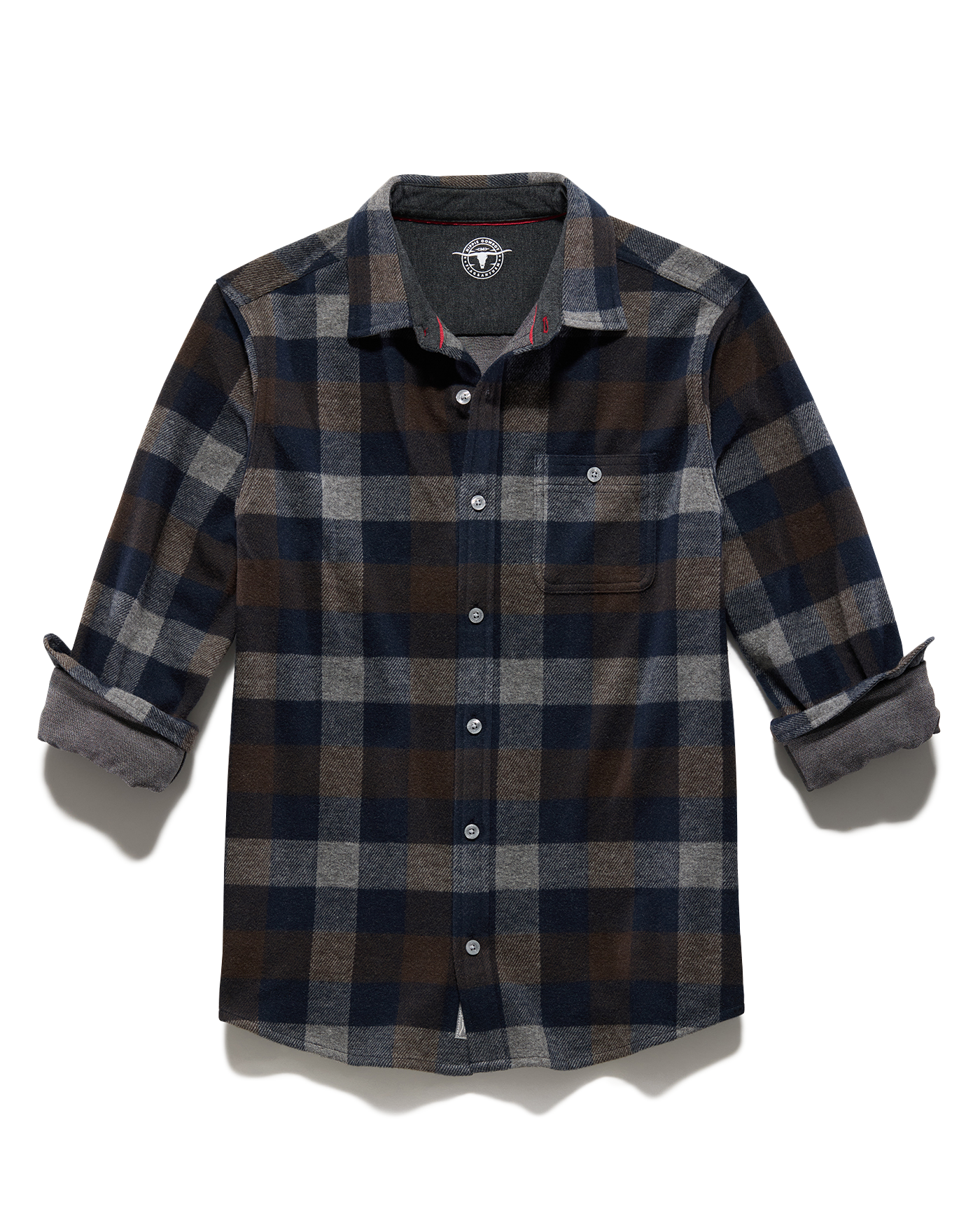 Our Hero Stretch Flannel Shirt looks like a button-down but feels like a sweatshirt. Made from a soft, stretchy knit flannel fabric in a fit that layers easily and looks great untucked, this versatile plaid shirt is the perfect balance of all-day comfort and casual style. Contrast fabric inside collar stand, back yoke, front placket, and sleeve cuffs. Single front patch pocket; button closures. Tailored athletic fit.