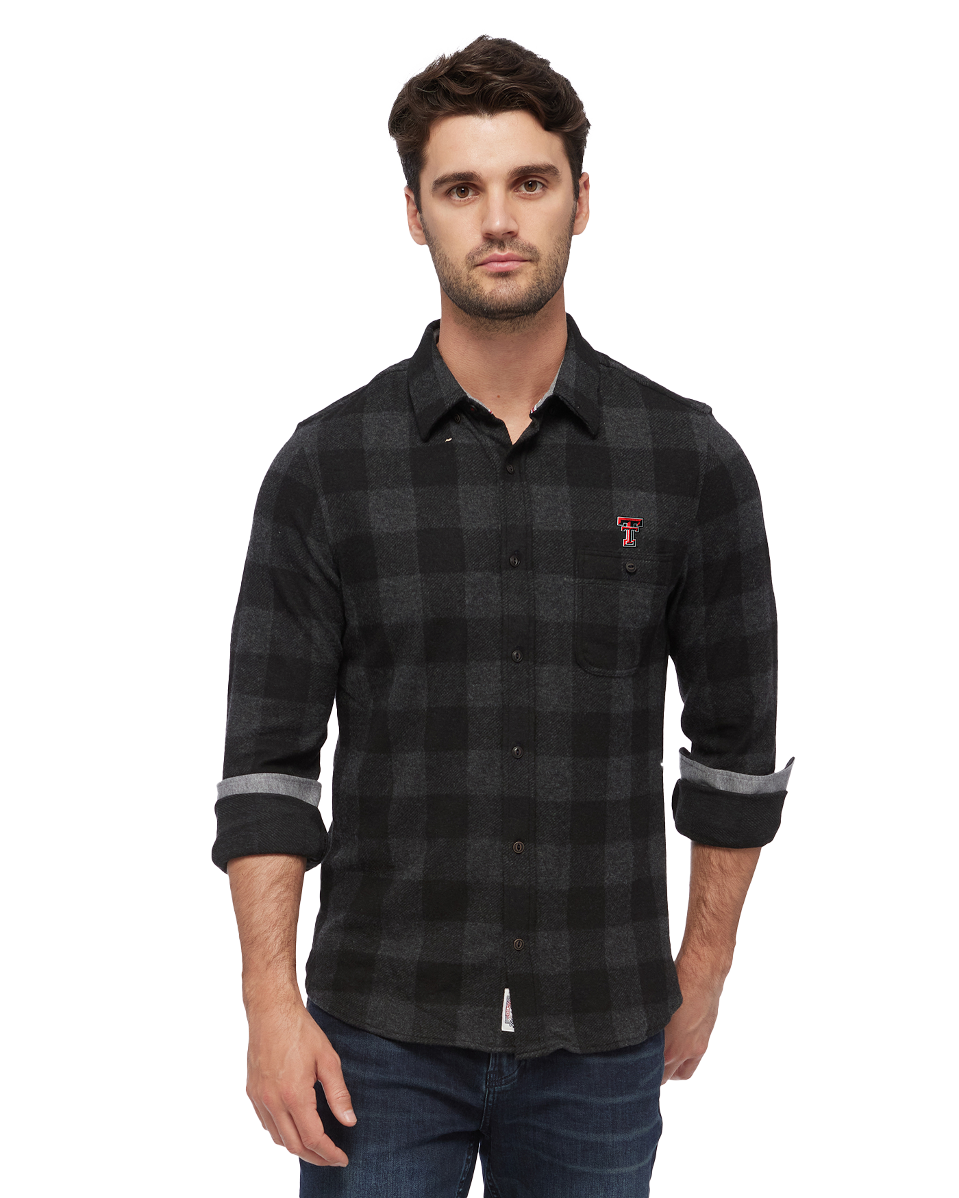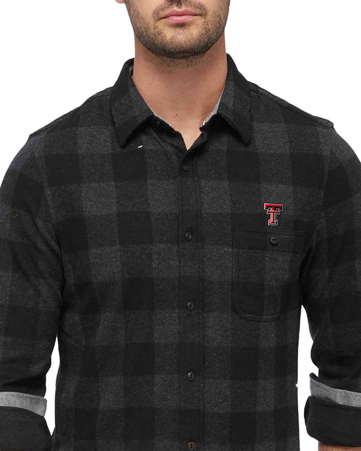 With a blend of extremely soft and stretchy knit performance fabric, you’ll find yourself reaching for this fall favorite all season long. Layer over your favorite tees, or on its own– this endlessly versatile flannel can be worn anytime, anywhere. Contrast fabric inside collar stand, back yoke, front placket, and sleeve cuffs. Dual front chest pockets; button closures. Tailored athletic fit. Texas Tech Double T embroidered on chest above patch pocket.