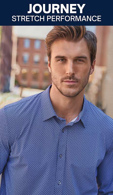 Maximum stretch fabric redefines the dress shirt. Comfortable, sweat-wicking, wrinkle-free.