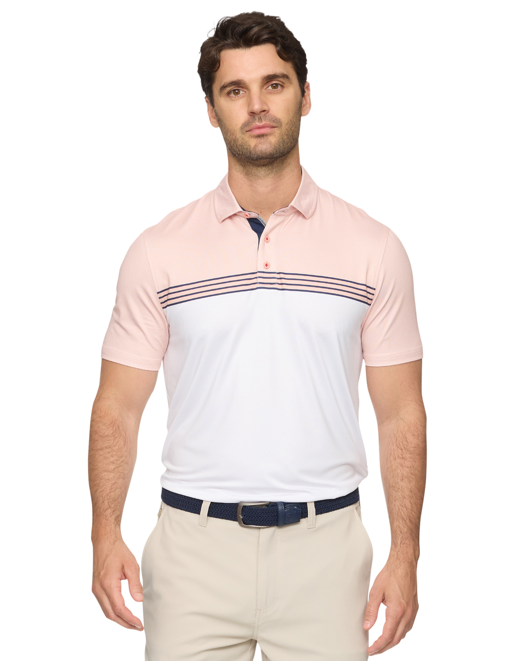 Our signature striped performance polos bring a subtle sense of sophistication to your everyday look.