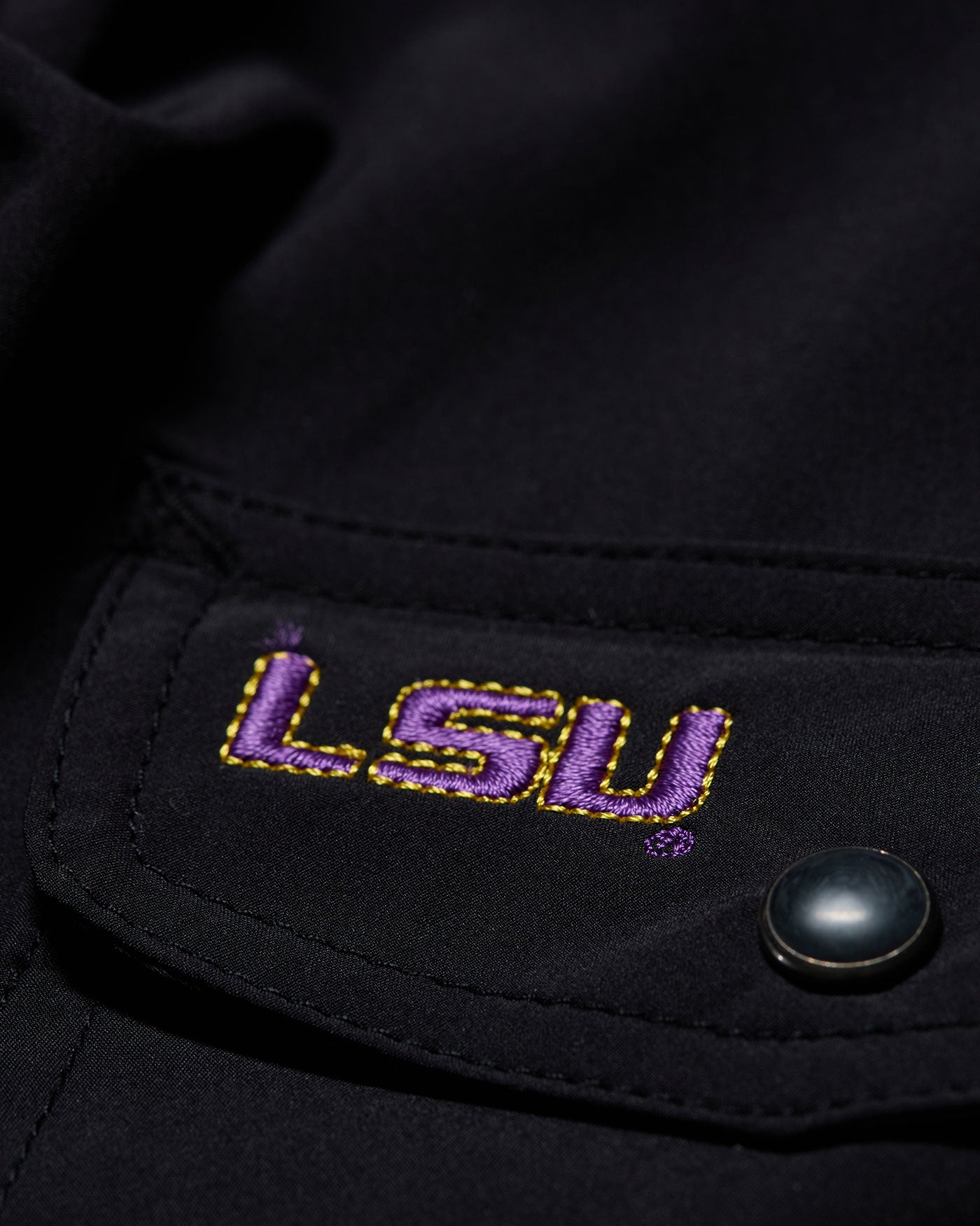 Made from a lightweight and breathable stretch fabric that wicks moisture, dries fast, and provides permanent UPF protection, this elevated Western shirt works hard to keep you comfortable and cool - even on the hottest days. Contrast fabric inside collar stand, back yoke, front placket, and sleeve cuffs. Dual front flap pockets; pearlized snap closures. Hidden lens cleaner at the hem keeps optics clean. Tailored athletic fit. LSU block letters embroidered on chest pocket flap.