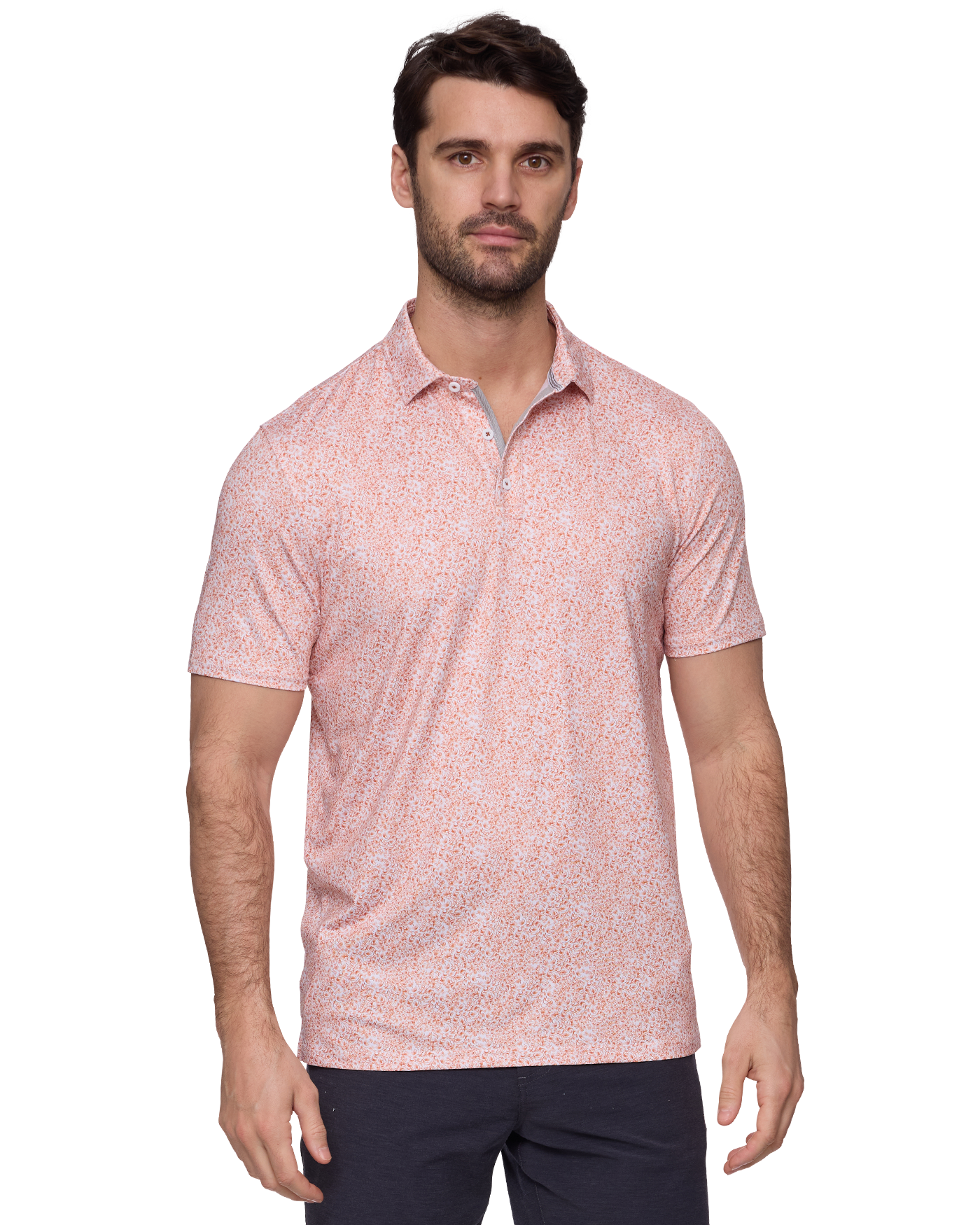 Made from a stretch jersey fabric that feels as smooth as your swing with details as sharp as your short game, we've teed up the most versatile performance polo in a variety of unique prints guaranteed to get the good times rolling whether you're on the go or in the game. Traditional three-button front placket; rubberized MadeFlex performance patch logo at center back neck. Tailored athletic fit.