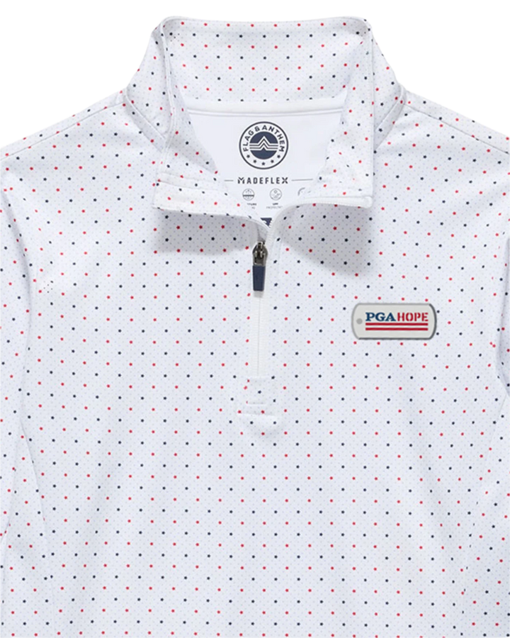 Meet our Most Versatile Performance (MVP) 1/4-zip, designed for the course, the court, or just everyday life. Made from premium stretch fabric featuring moisture-wicking technology and UPF sun protection, it’s comfortable, versatile, and easy to move in. Finished with a crisp mock neck collar, a sharp comfortable fit, and side slits on the hem, it offers a flattering and functional look without compromise. PGA HOPE logo embroidery on the left chest.