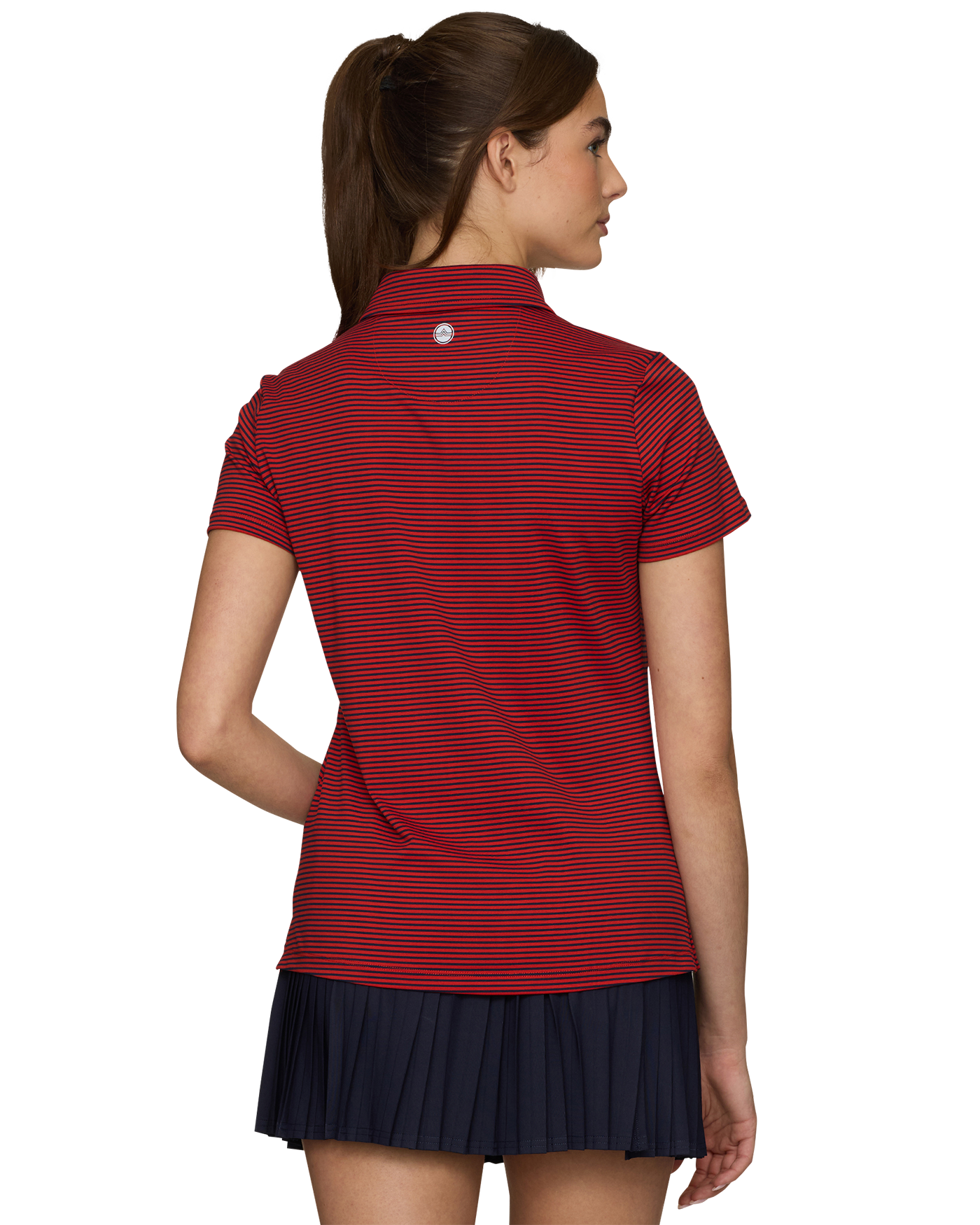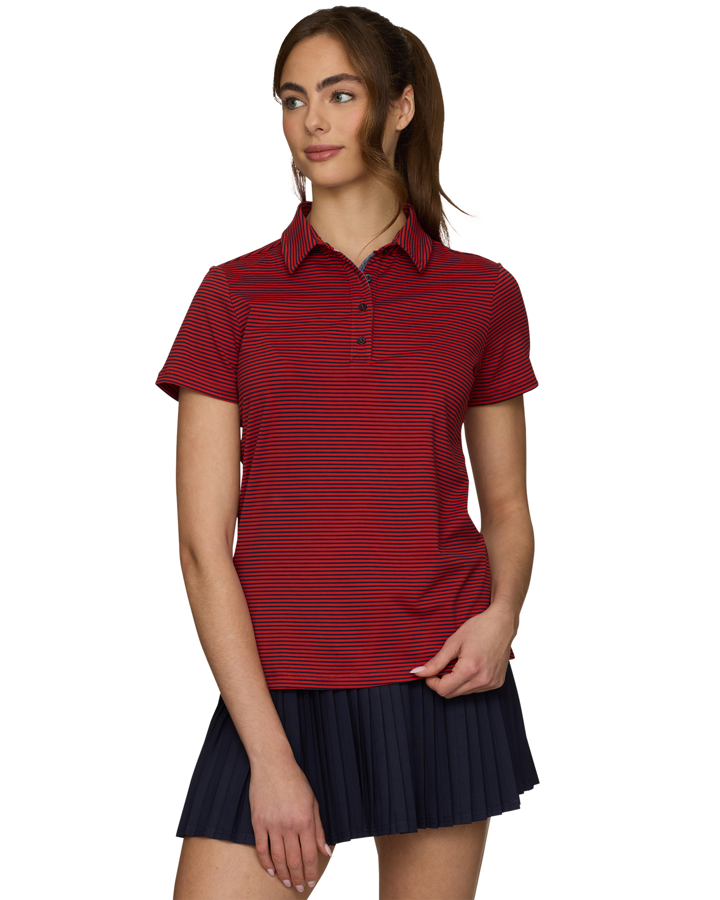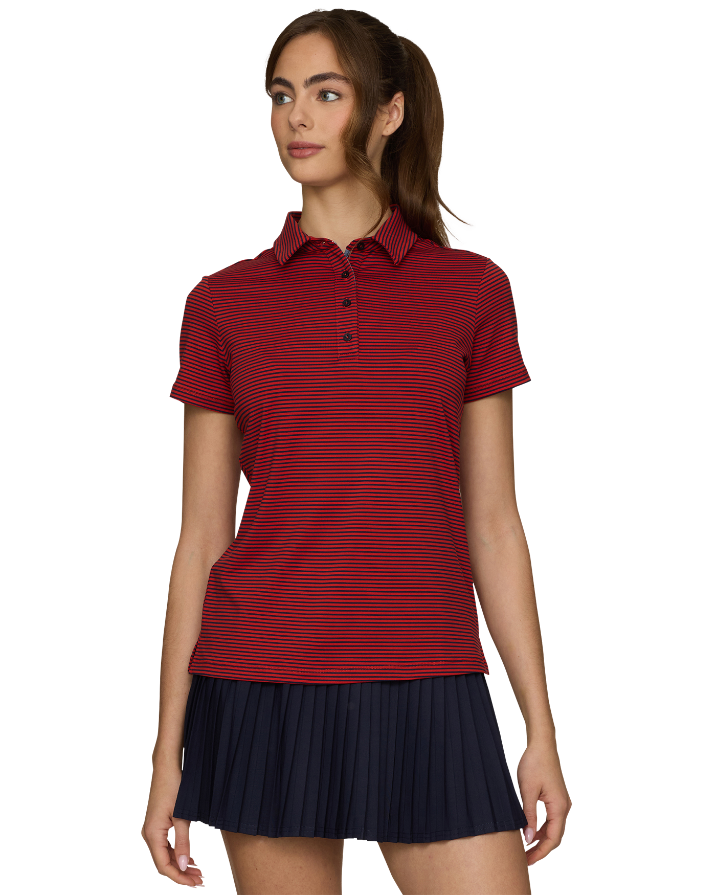 Our Naples Polo is crafted from a breathable stretch fabric that delivers effortless performance. Built with moisture-wicking technology and UPF sun protection, it will keep you cool, comfortable, and ready to play. Featuring a classic mini stripe pattern, a crisp collar that holds its shape, and a tailored fit that can be worn tucked or untucked, it ensures a clean, sleek look without compromise.