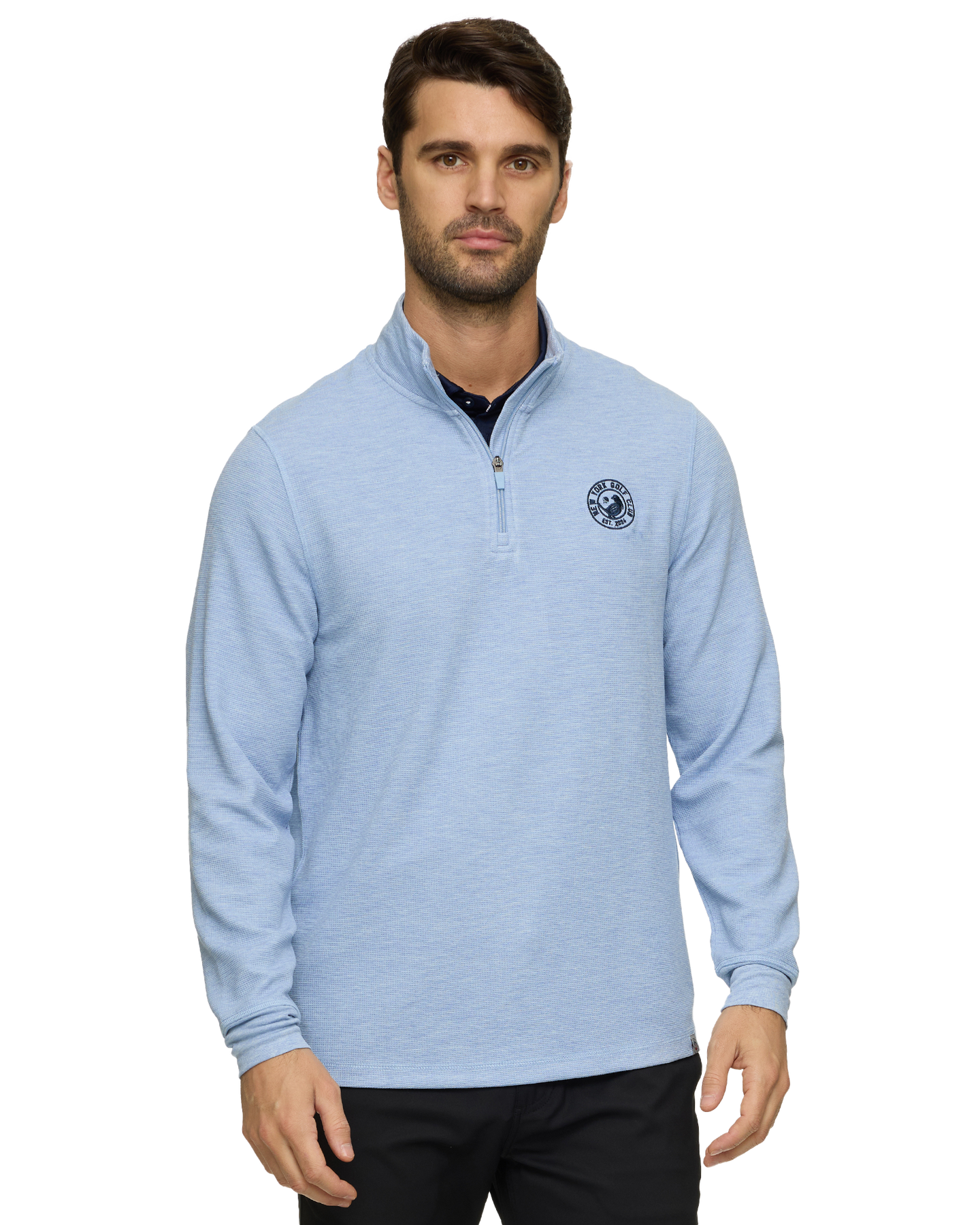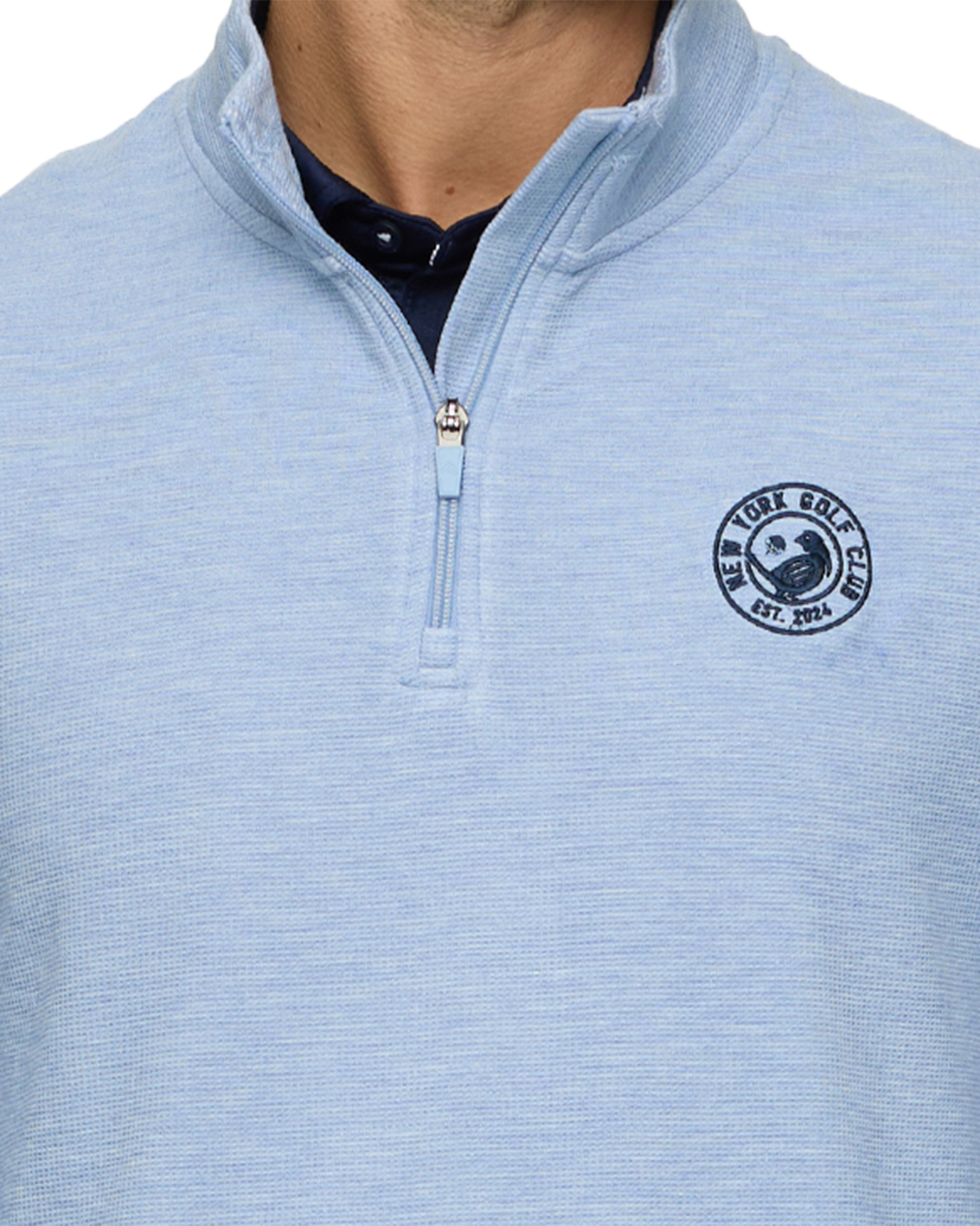 The softest 1/4-zip on the course and off. Made from super soft, lightweight micro waffle knit fabric with the perfect amount of stretch, our Summit Super Soft 1/4-Zip was designed to keep you comfortable on the course and off. Standing mock neck collar; 1/4-length front zipper from chest to chin. Tailored athletic fit. New York Golf Club logo embroidered on chest.