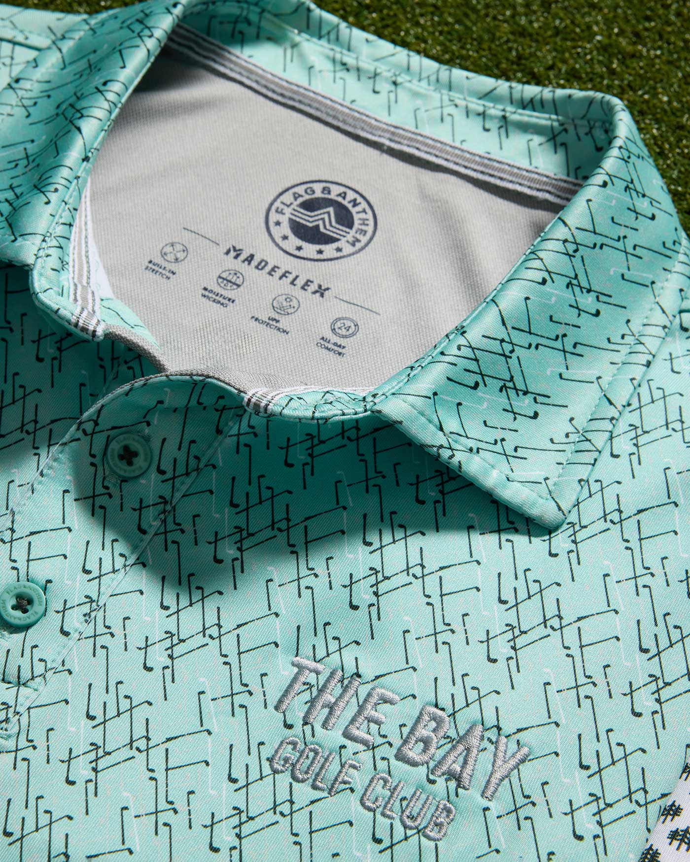 Made from a stretch jersey fabric that feels as smooth as your swing with details as sharp as your short game, we've teed up the most versatile performance polo in a variety of unique prints guaranteed to get the good times rolling whether you're on the go or in the game. Traditional three-button front placket; rubberized MadeFlex performance patch logo at center back neck. Tailored athletic fit. The Bay Golf Club logo embroidered on chest.