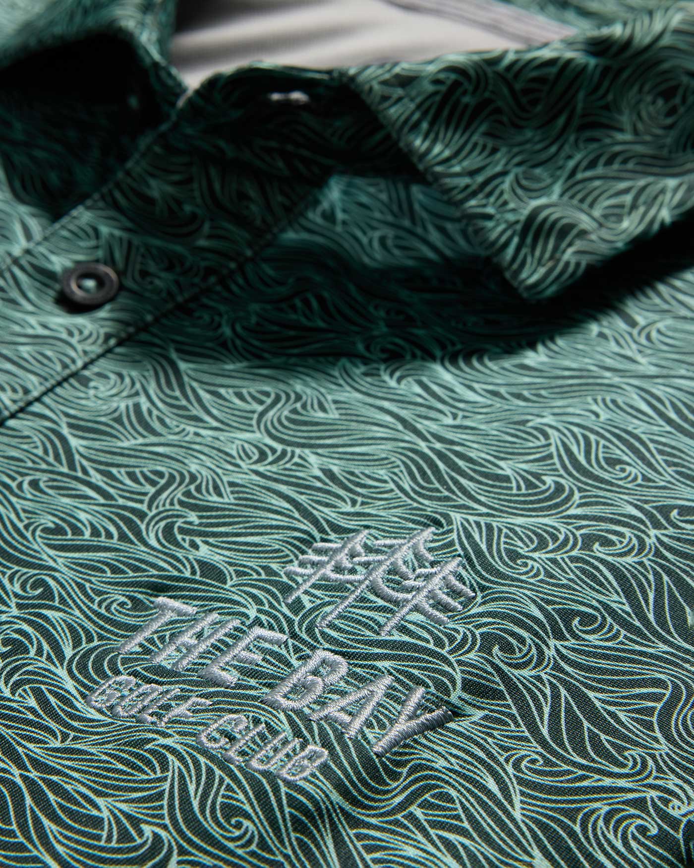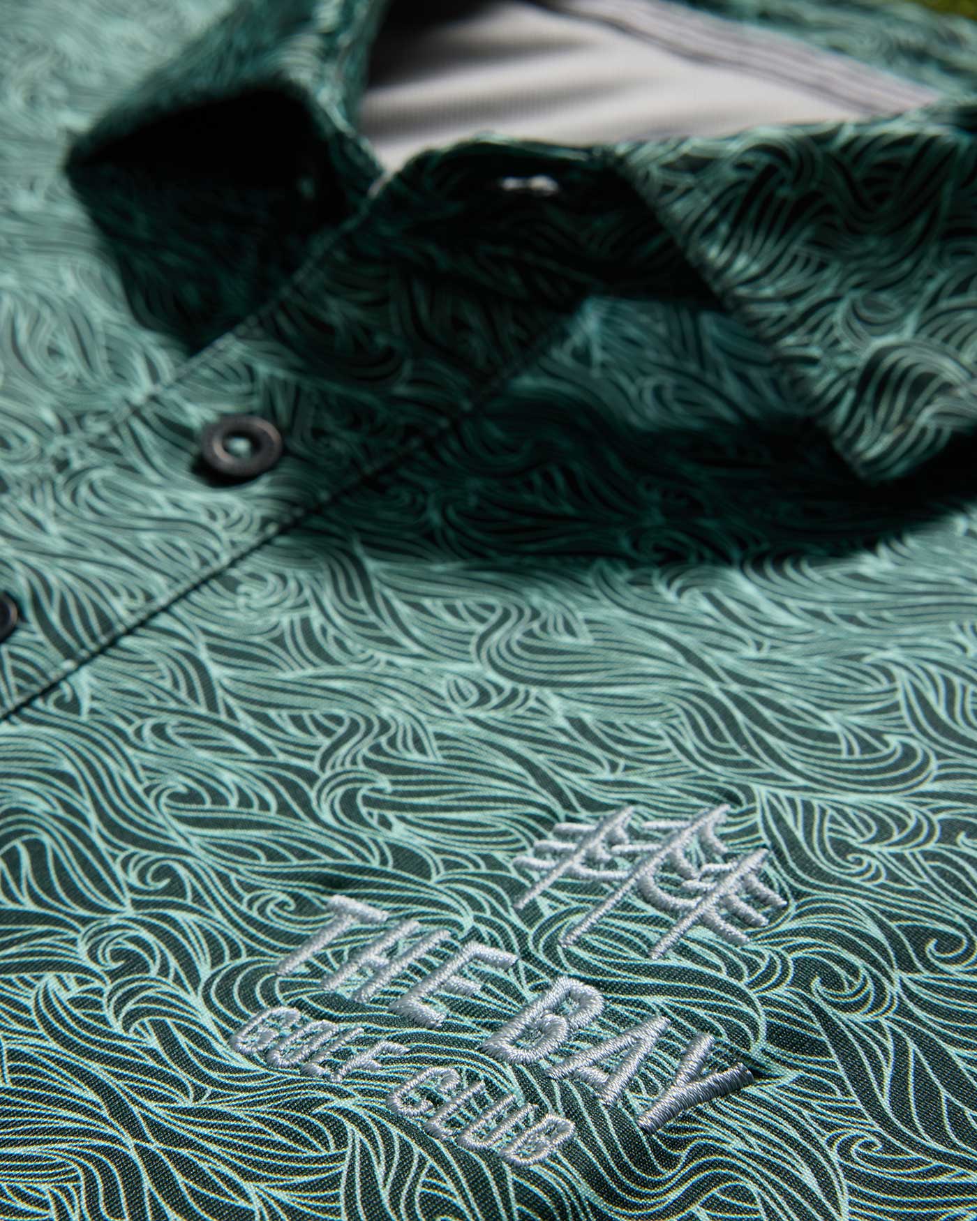 Made from a stretch jersey fabric that feels as smooth as your swing with details as sharp as your short game, we've teed up the most versatile performance polo in a variety of unique prints guaranteed to get the good times rolling whether you're on the go or in the game. Traditional three-button front placket; rubberized MadeFlex performance patch logo at center back neck. Tailored athletic fit. The Bay Golf Club logo embroidered on chest.