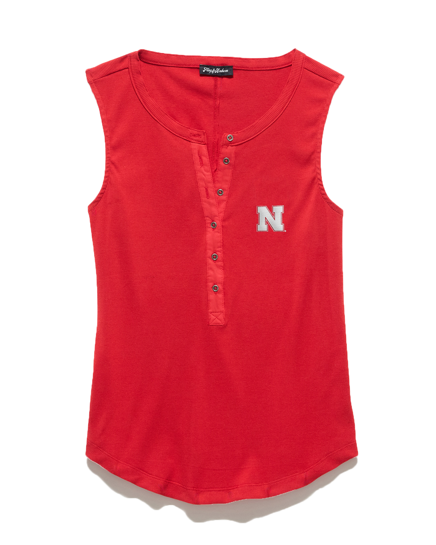 Comfy, casual, classic - our Denning Henley Tank is a must-have for creating a variety of cute gameday looks. Soft and stretchy ribbed knit shapes this essential top that features wide tank straps that frame a rounded crew neckline and a figure-skimming silhouette with a partial, henley-inspired button placket at the center.