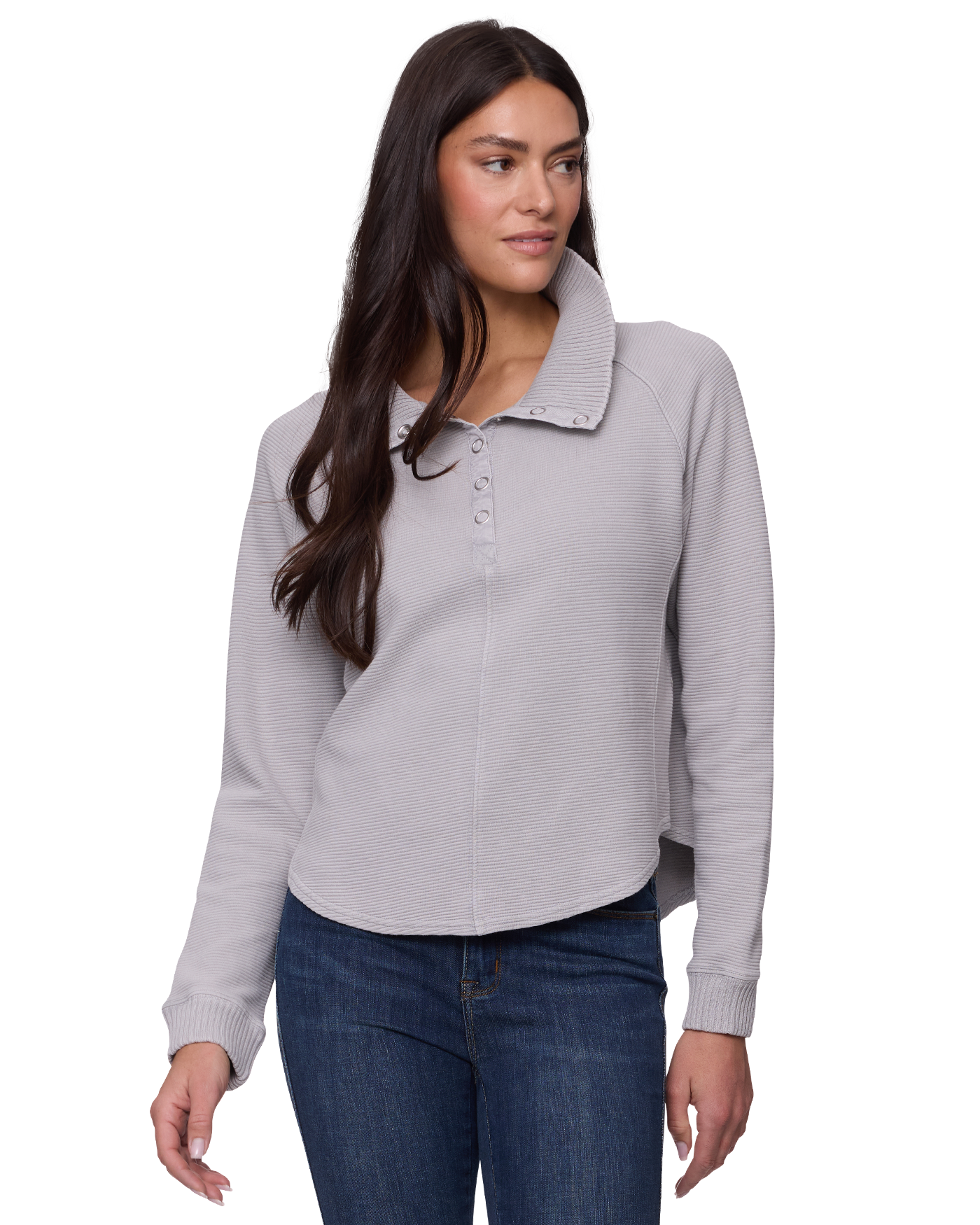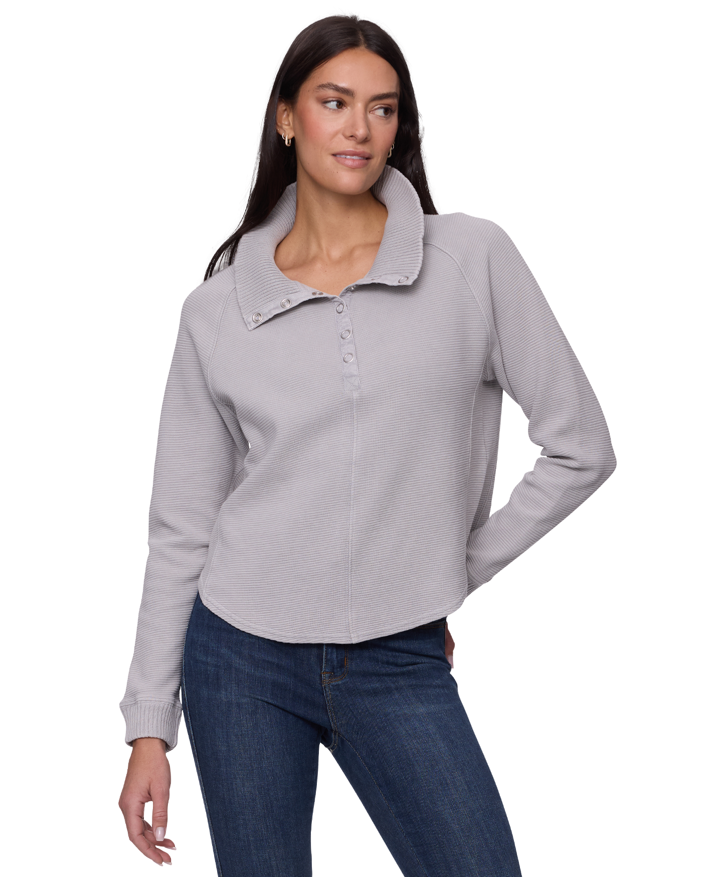 Cotton fabric shapes this incredibly comfortable ribbed pullover that’ll keep you warm without sacrificing style. Snap closures line the front placket of this 1/4-snap pullover with a relaxed body that ends in an always flattering curved hem.