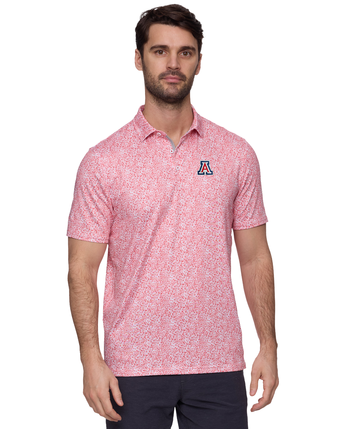Made from a stretch jersey fabric that feels as smooth as your swing with details as sharp as your short game, we've teed up the most versatile performance polo in a variety of unique prints guaranteed to get the good times rolling whether you're on the go or in the game. Traditional three-button front placket; rubberized MadeFlex performance patch logo at center back neck. University of Arizona "Block A" embroidered on chest.