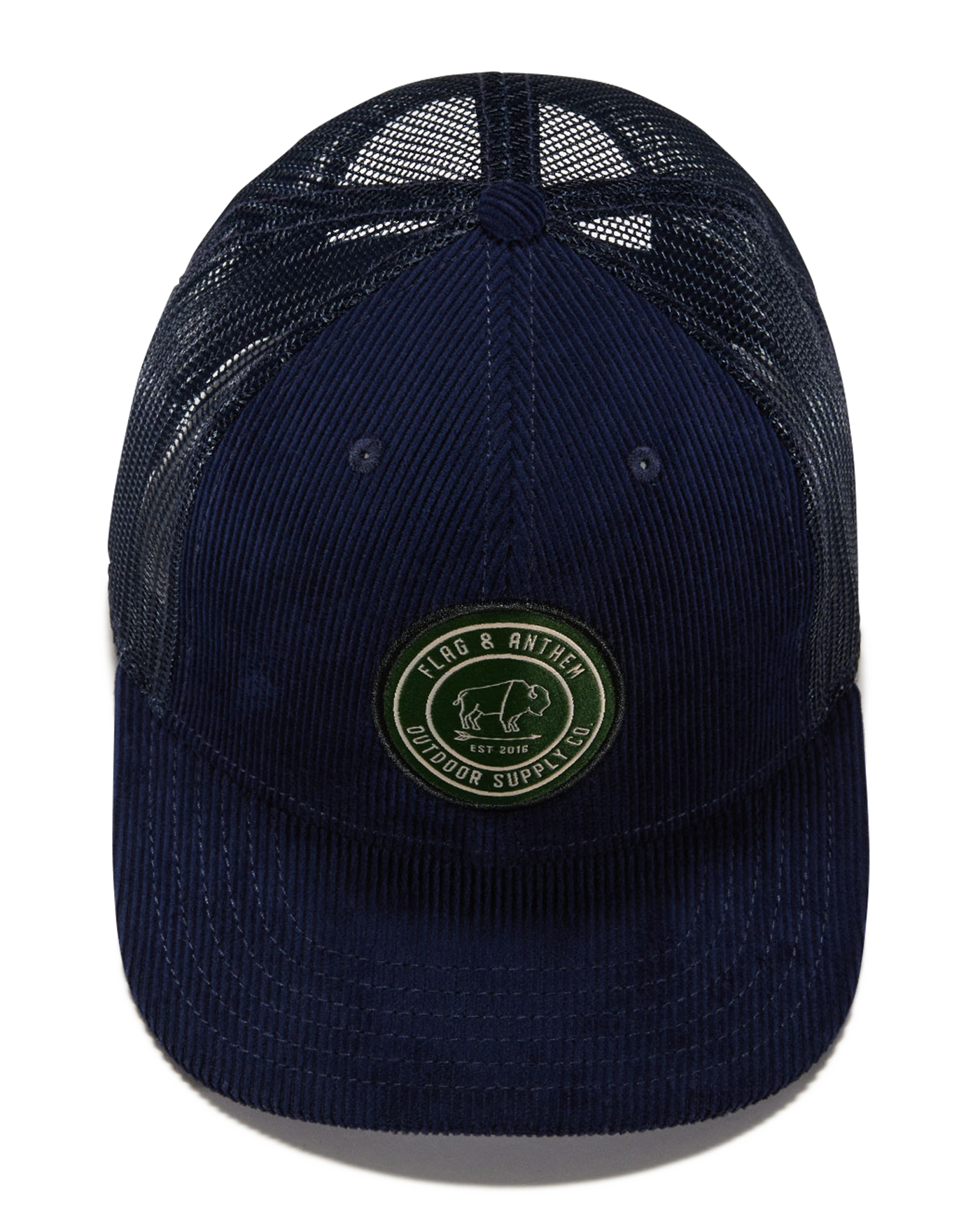 With a structured built and pre-curved brim that maintains its shape with each and every wear, this comfortable vintage-inspired corduroy trucker hat is an easy accessory to throw on and go, any day of the week. Original Flag & Anthem embroidered patch. Five-panel fit construction; adjustable snapback closure.