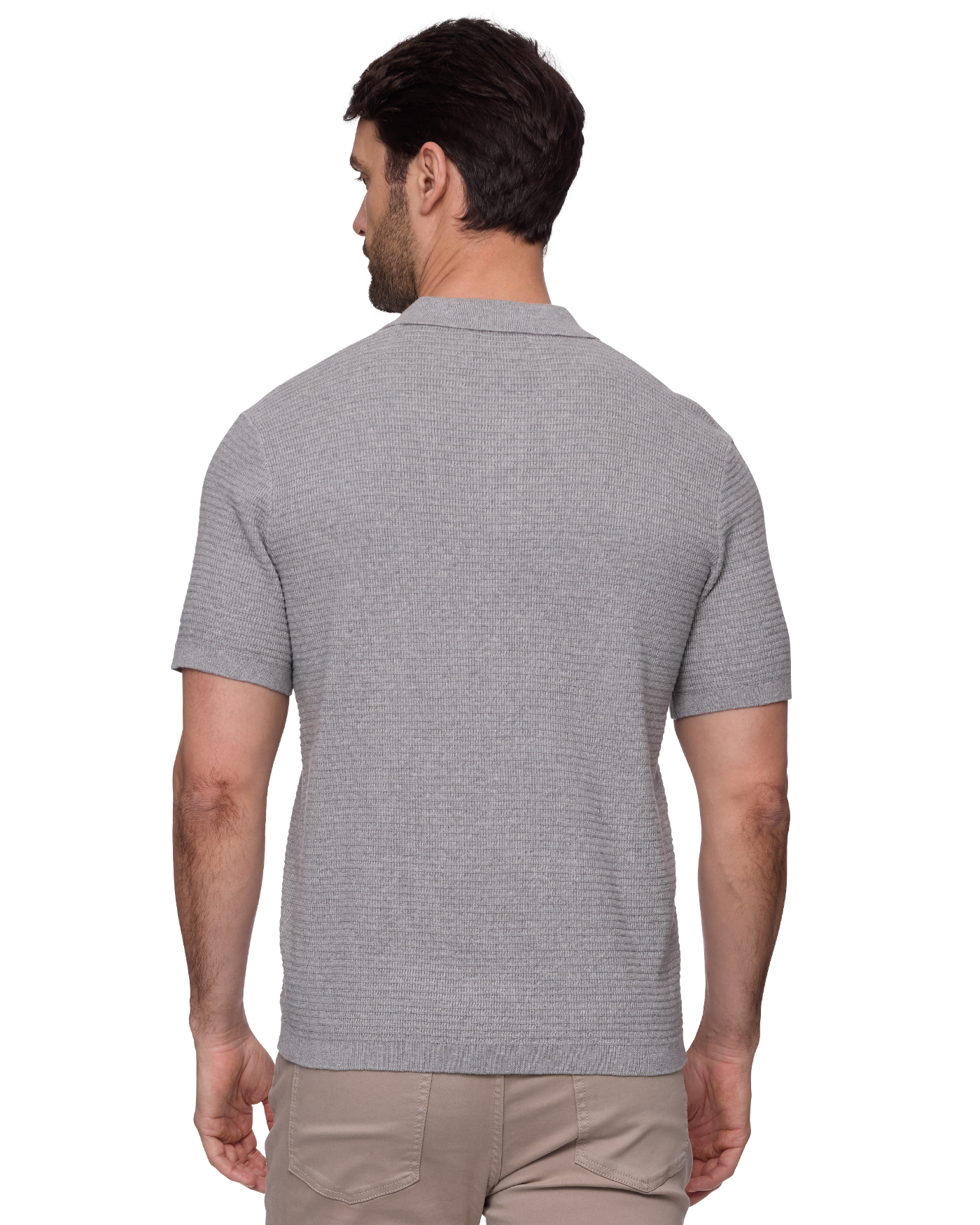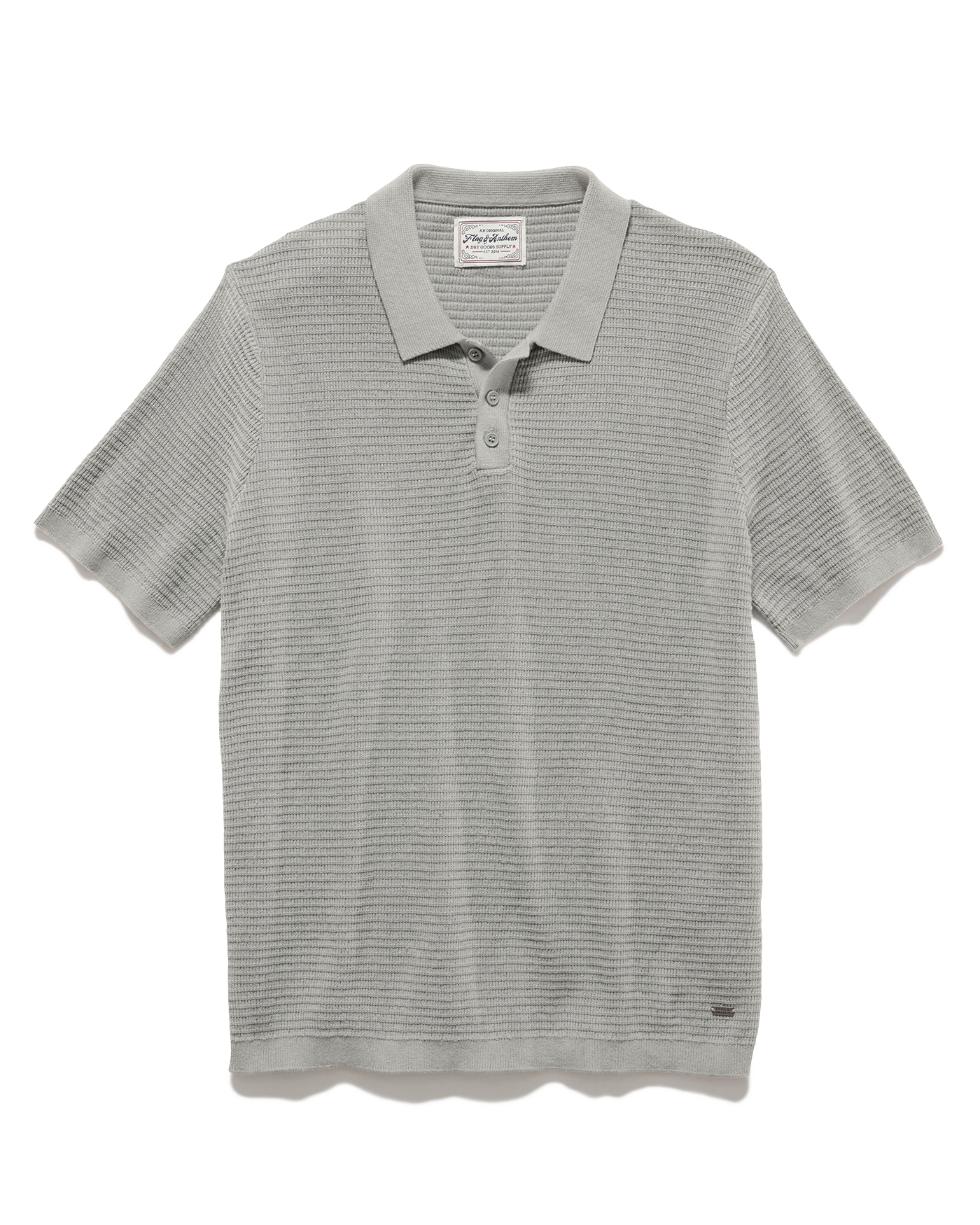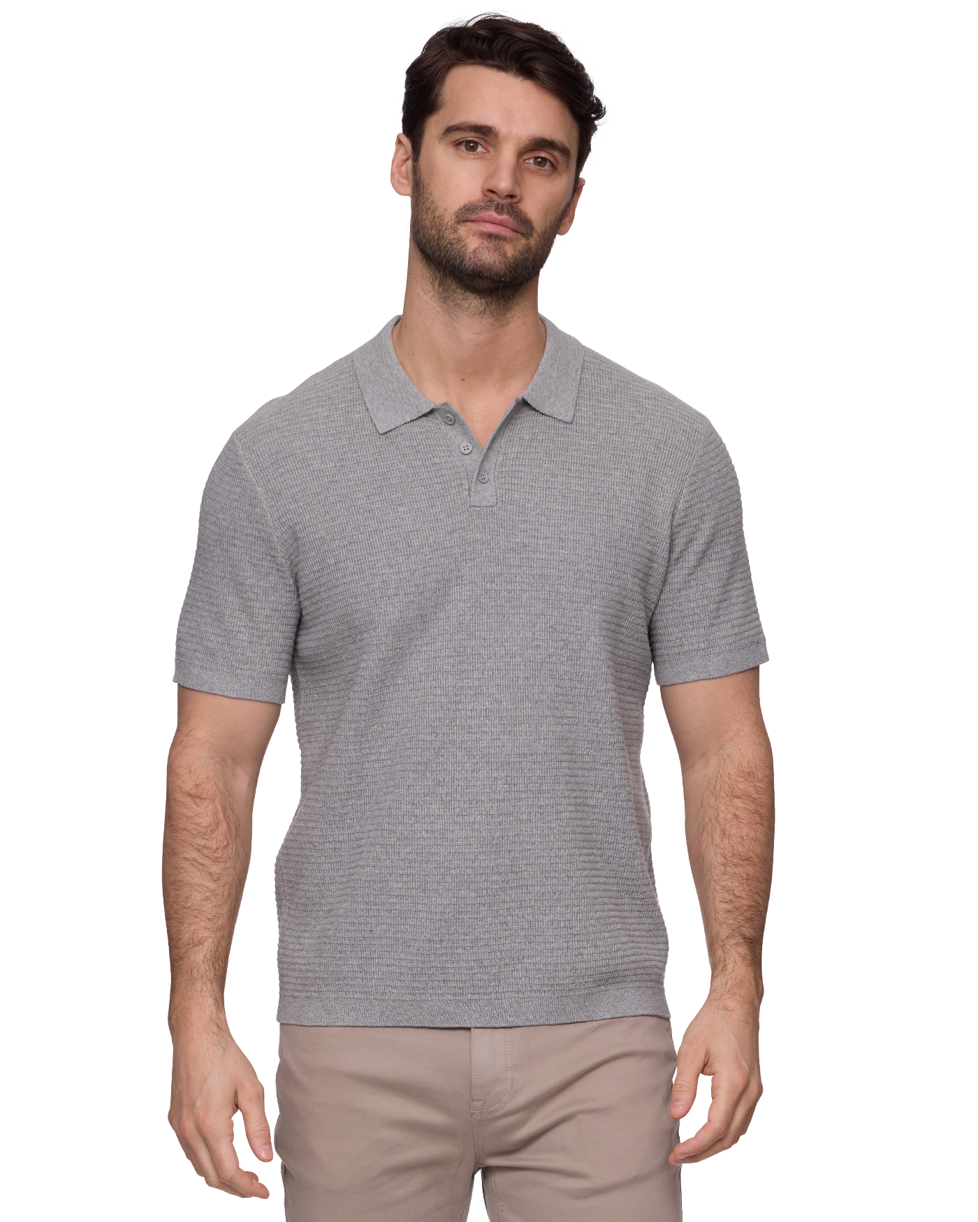 Crafted from breathable, soft-to-the-touch cotton fabric this sweater polo features a textured knit that adds character to a timeless, classic style. The three-button front placket, classic spread collar, and elevated ribbed trim created a refined style that’ll take you from the office to happy hour with ease.