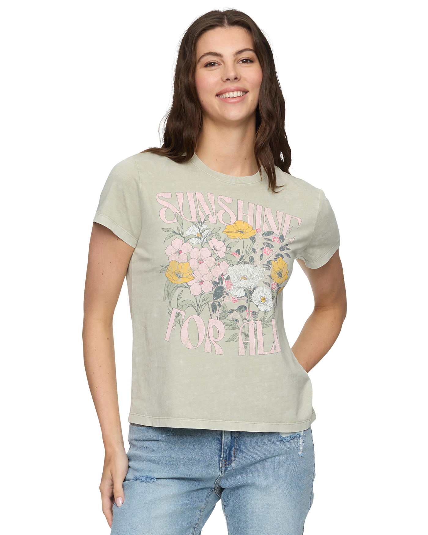 Soft, naturally breathable knit cotton fabric shapes a classic crew neckline, short sleeves, and a relaxed body that boasts a vintage inspired “Poppy Flower” text and graphic. All-original Flag & Anthem artwork