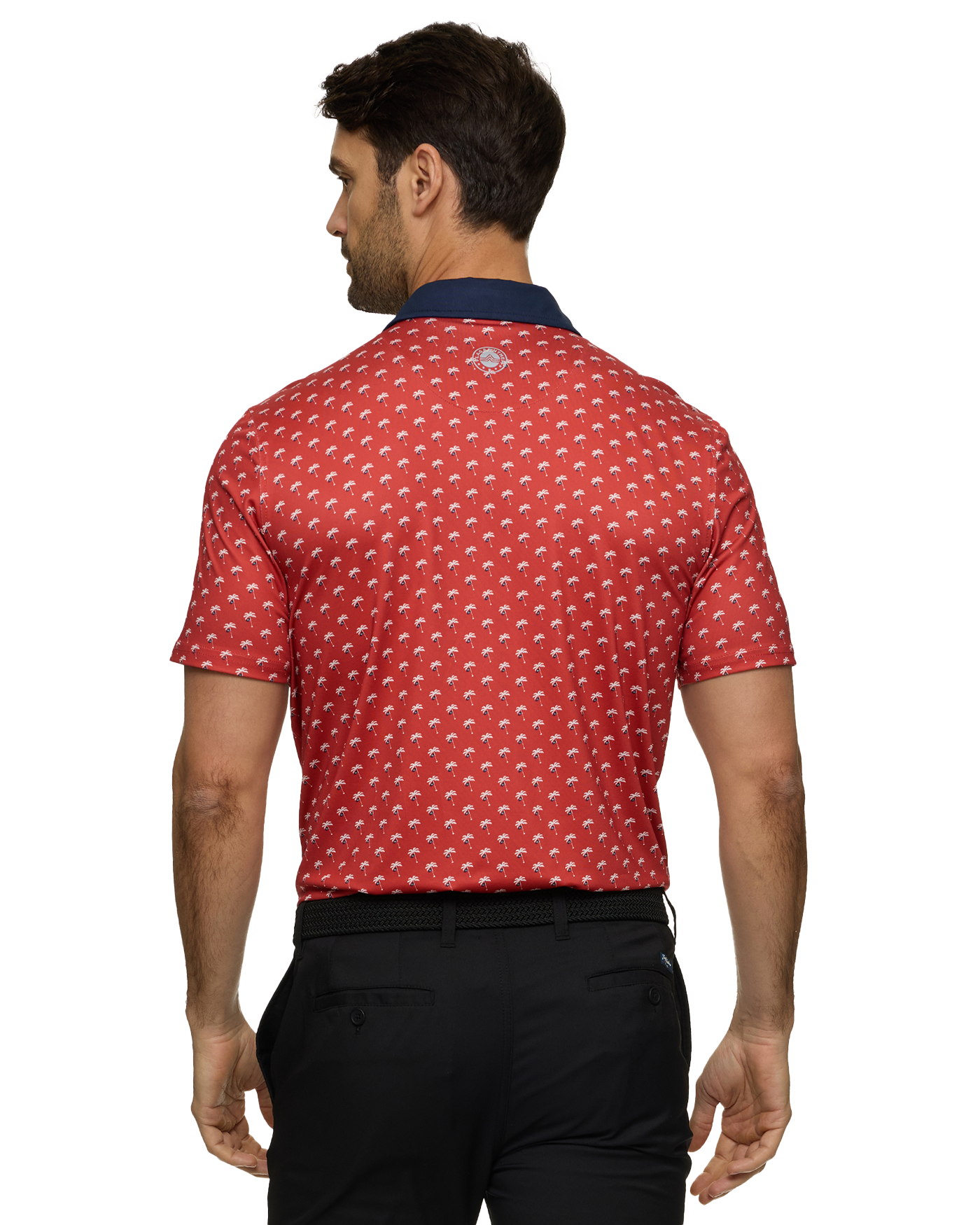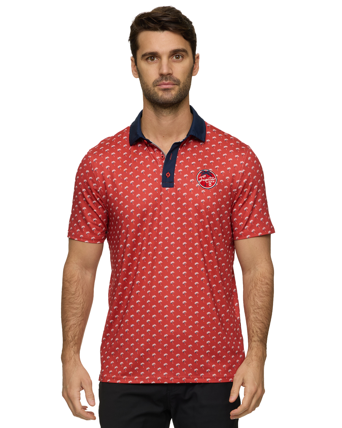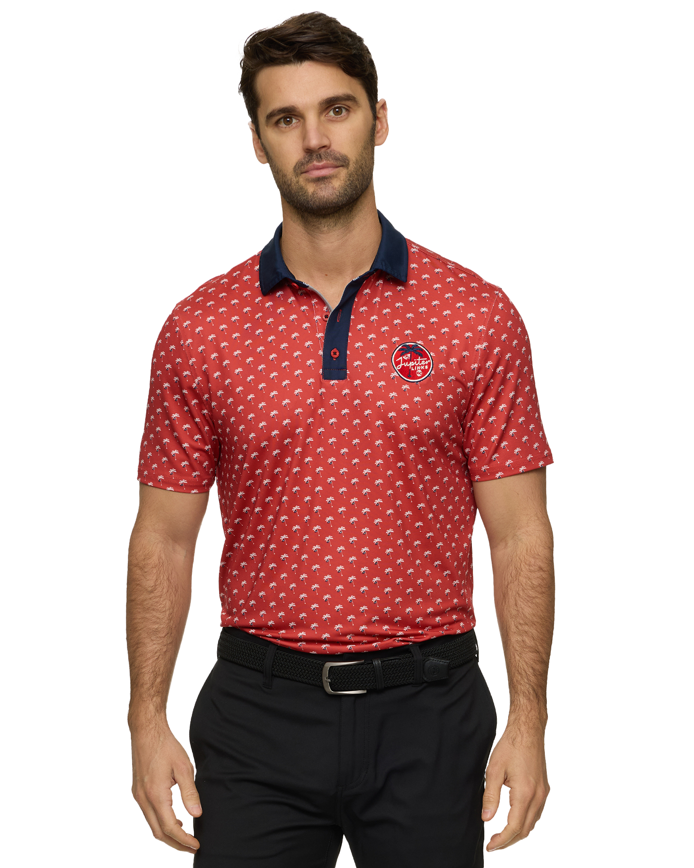 Made from a stretch jersey fabric that feels as smooth as your swing with details as sharp as your short game, we've teed up the most versatile performance polo in a variety of unique prints guaranteed to get the good times rolling whether you're on the go or in the game. Traditional three-button front placket; rubberized MadeFlex performance patch logo at center back neck. Tailored athletic fit. Jupiter Links Golf Club logo embroidered on chest; palm tree print throughout.
