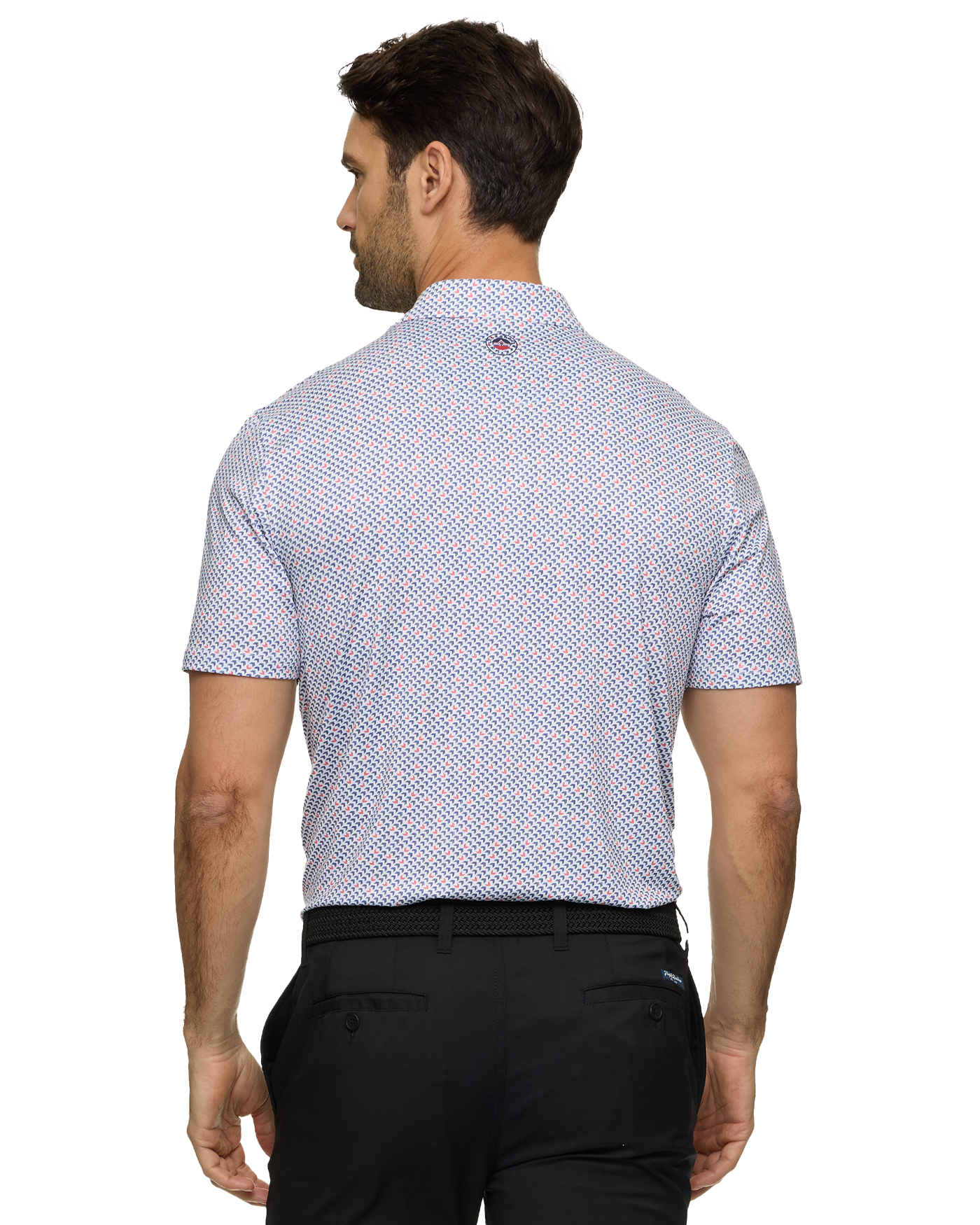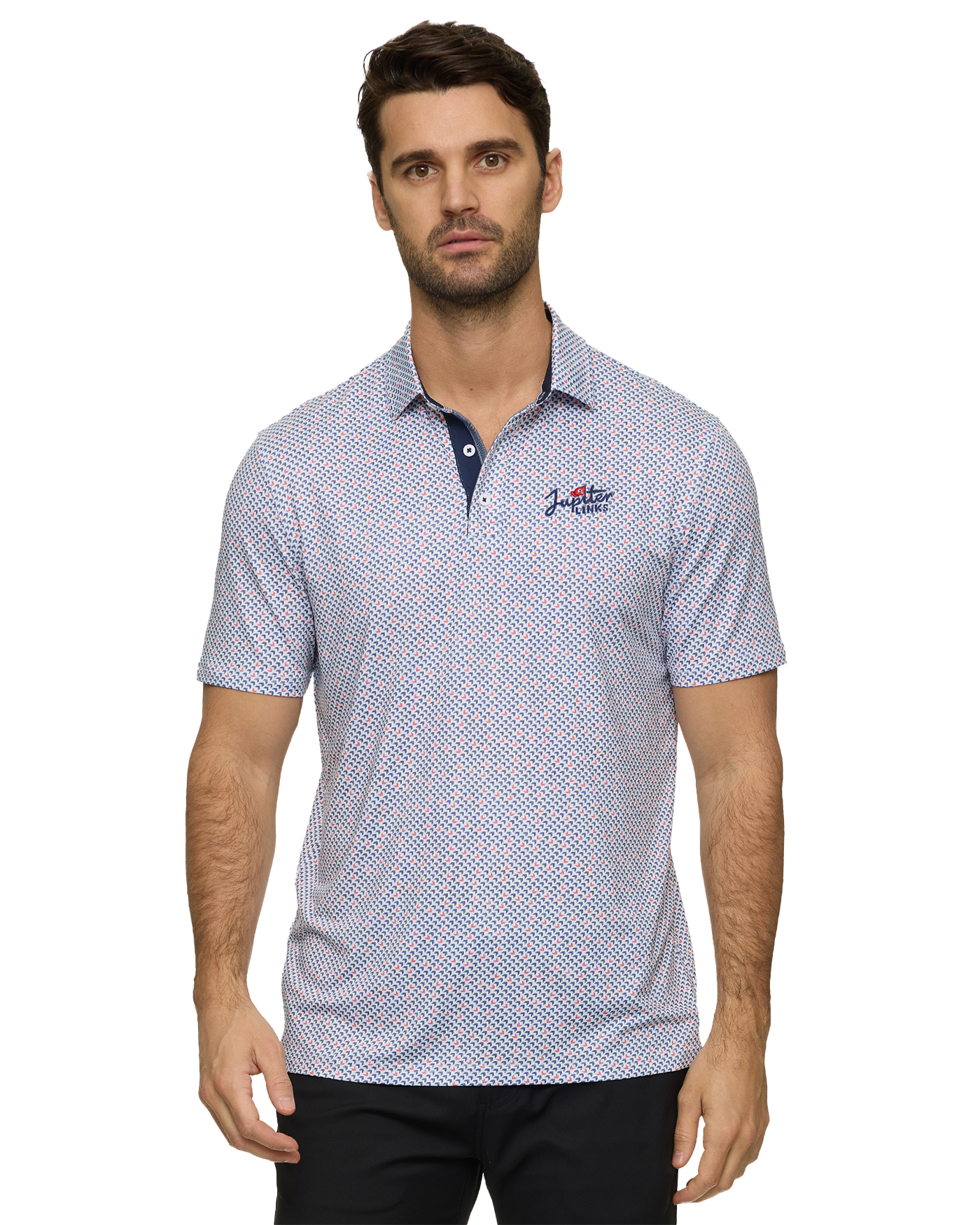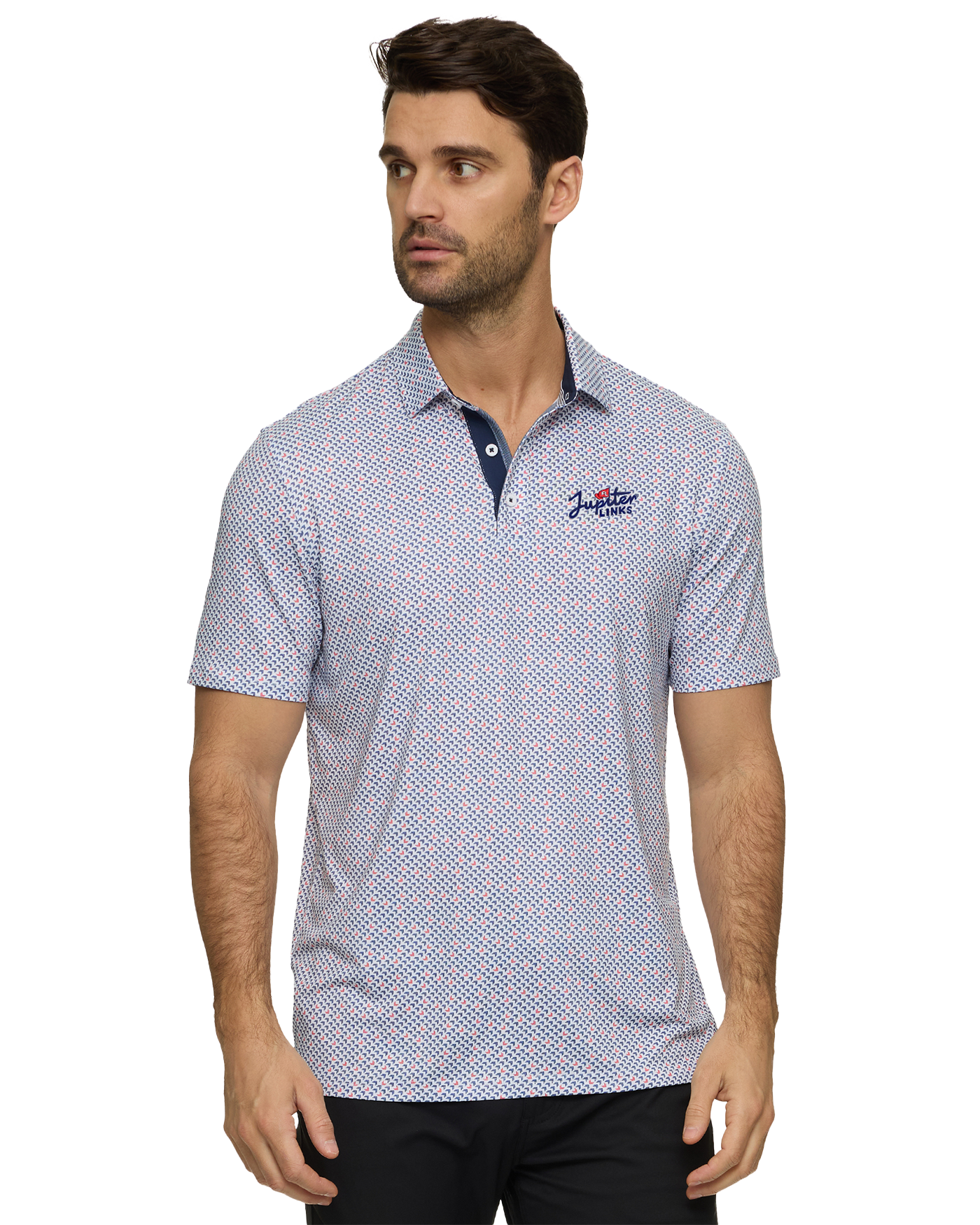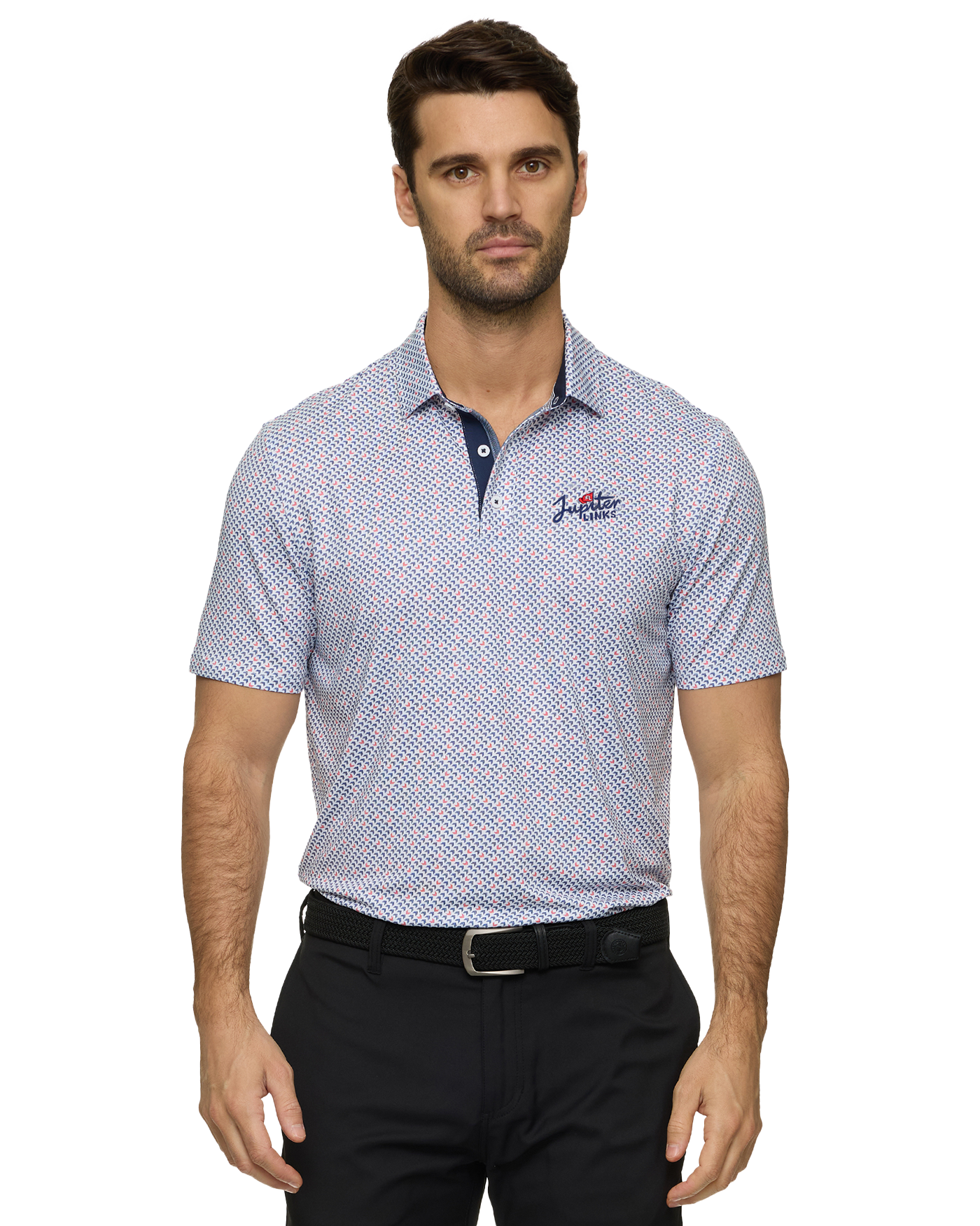 Made from a stretch jersey fabric that feels as smooth as your swing with details as sharp as your short game, we've teed up the most versatile performance polo in a variety of unique prints guaranteed to get the good times rolling whether you're on the go or in the game. Traditional three-button front placket; rubberized MadeFlex performance patch logo at center back neck. Tailored athletic fit. Jupiter Links Golf Club logo embroidered on chest.
