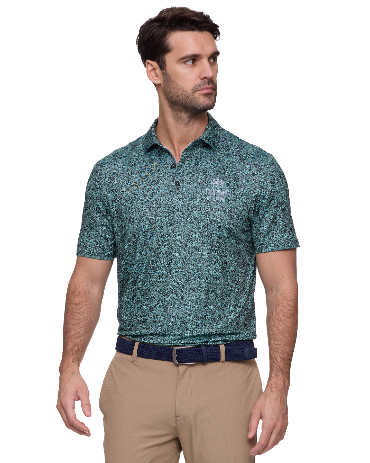 Made from a stretch jersey fabric that feels as smooth as your swing with details as sharp as your short game, we've teed up the most versatile performance polo in a variety of unique prints guaranteed to get the good times rolling whether you're on the go or in the game. Traditional three-button front placket; rubberized MadeFlex performance patch logo at center back neck. Tailored athletic fit. The Bay Golf Club logo embroidered on chest.