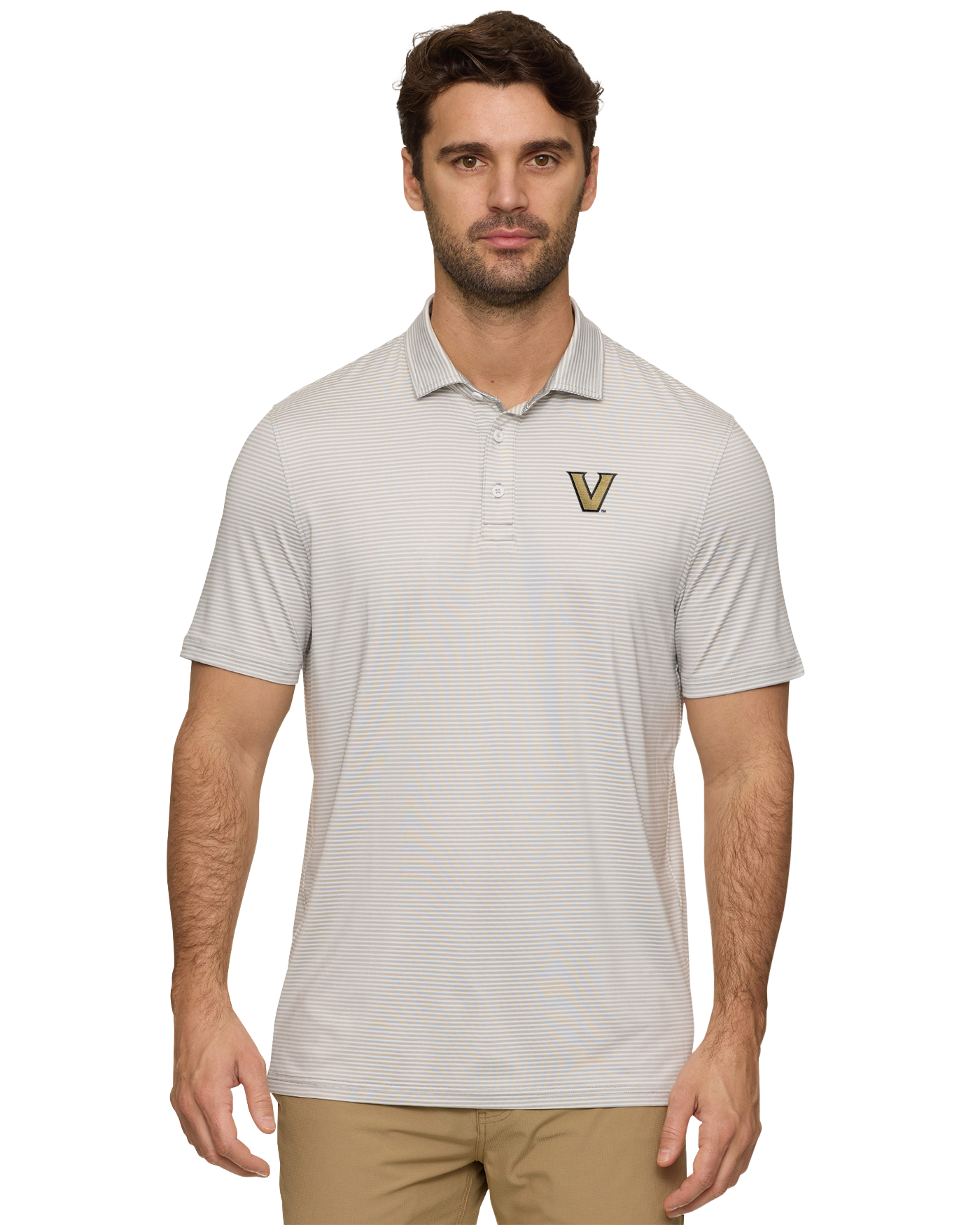 An innovative performance polo designed to look sharp, feel comfortable, and effortlessly transition throughout your day. Featuring some of our best performance technologies to wick away moisture, maximize mobility, and shield you from the sun plus a versatile heathered look with micro-feeder stripes, this polo will quickly become your go-to. Traditional three-button front placket; rubberized MadeFlex performance patch logo at center back neck. Vanderbilt V embroidered on chest.